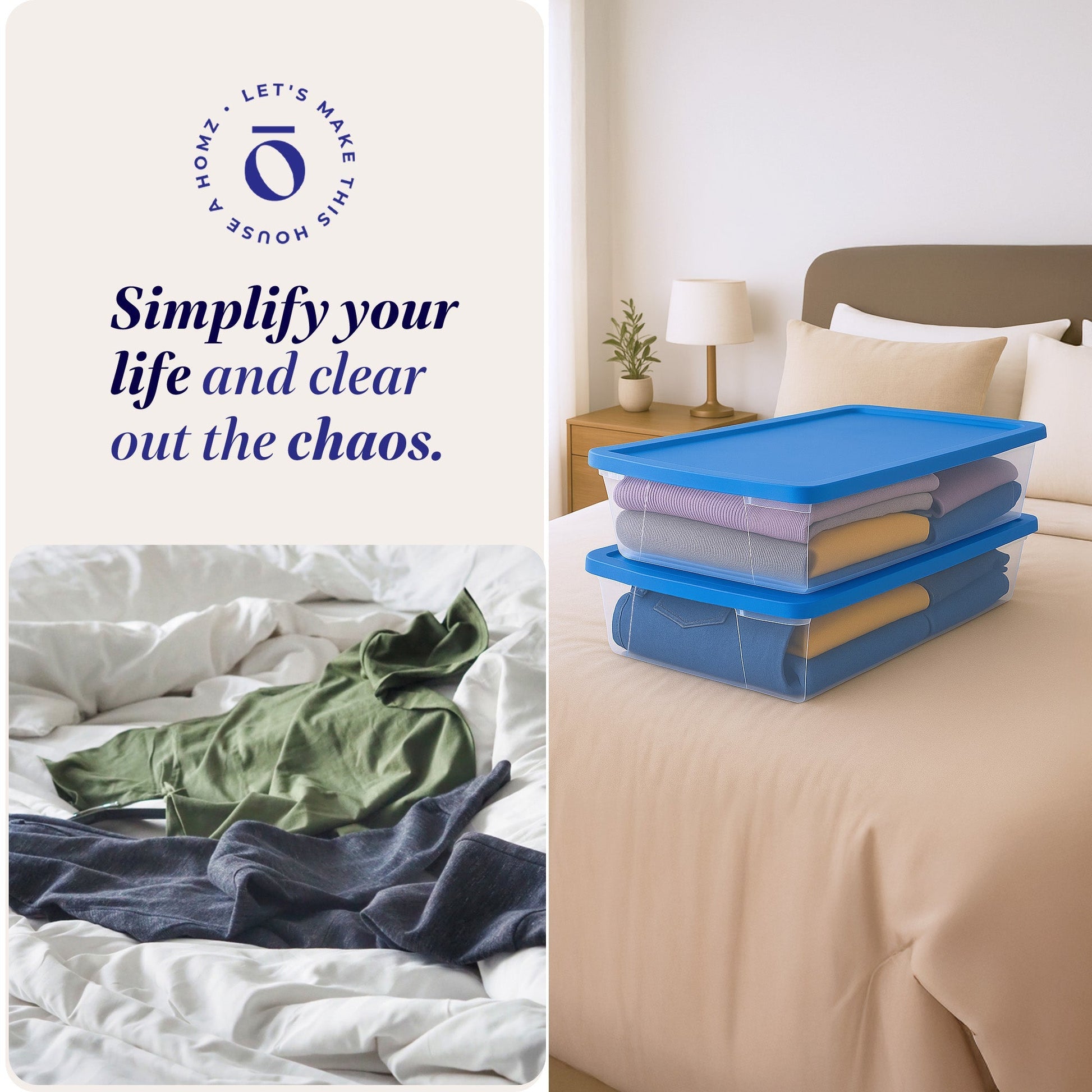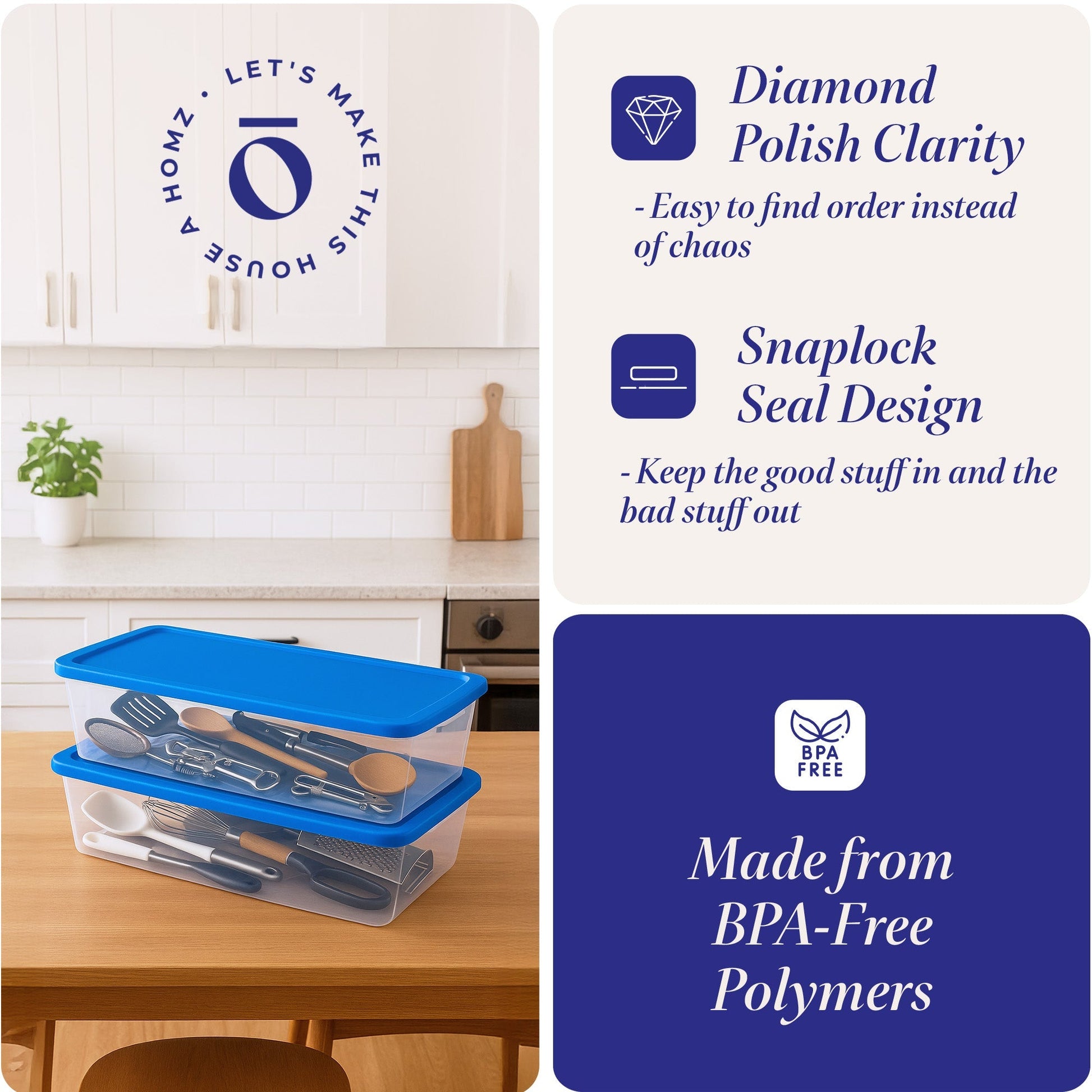 Homz Snaplock 41 Qt Stackable Plastic Storage Container w/ Lid, 2 Pack, Blue