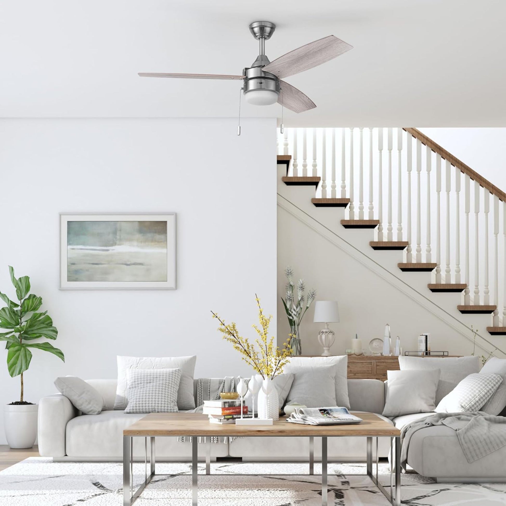Honeywell Berryhill Ceiling Fan, Quiet Motor and Pull Chain, 48", Brushed Nickel