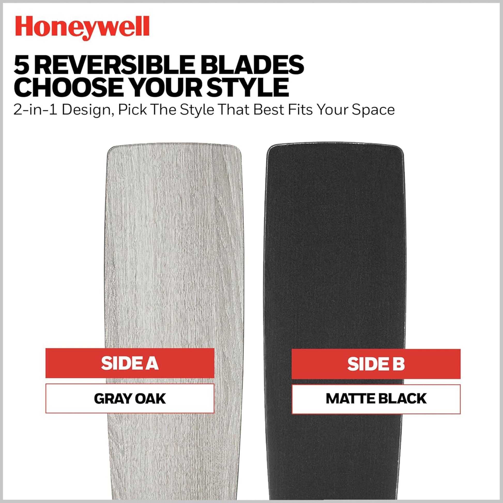 Enjoy comfort, energy savings, and stylish, sleek design all in one with this Indoor Ceiling Fan with Quiet, Reversible Motor from Honeywell, designed to fit your space and enhance your home's decor.