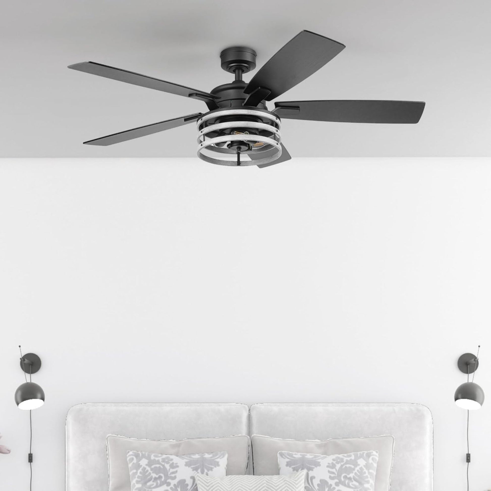 - Reversible blade with gray oak and matte black ensures the ceiling fan will blend in with existing decor