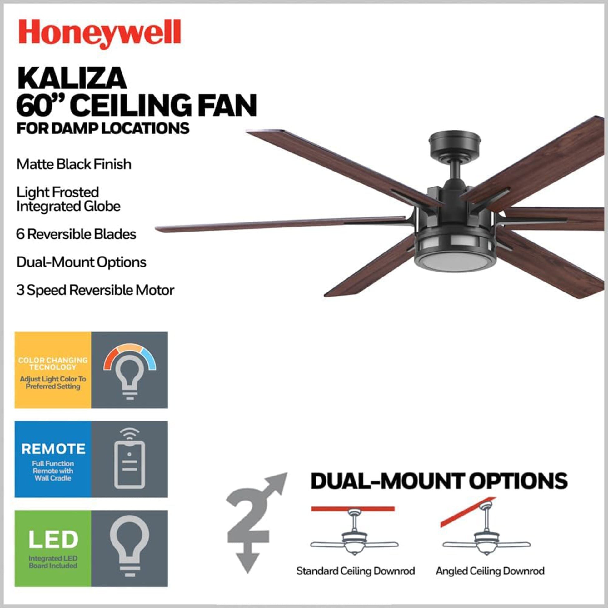 Honeywell Kaliza Ceiling Fan, Color Changing LED and Remote Control, 60", Black