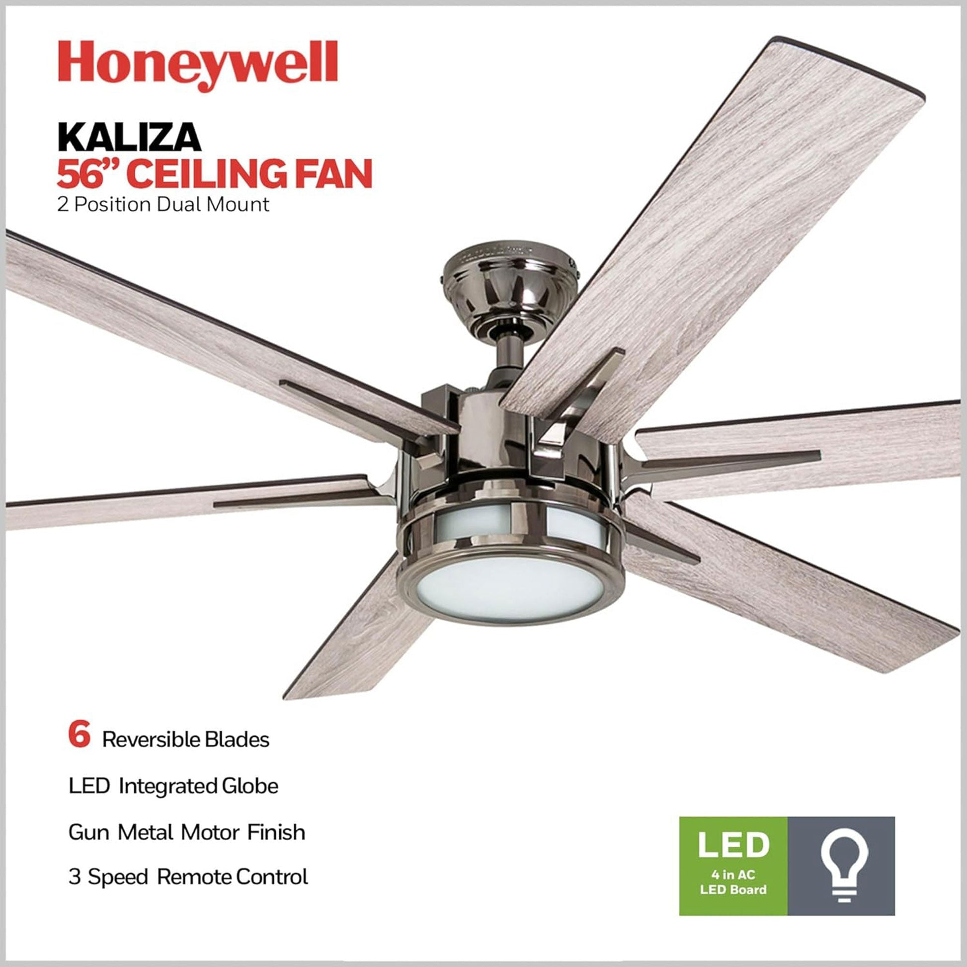 Honeywell Kaliza Ceiling Fan, Quiet Motor and Remote Control, 56", Matte Nickel