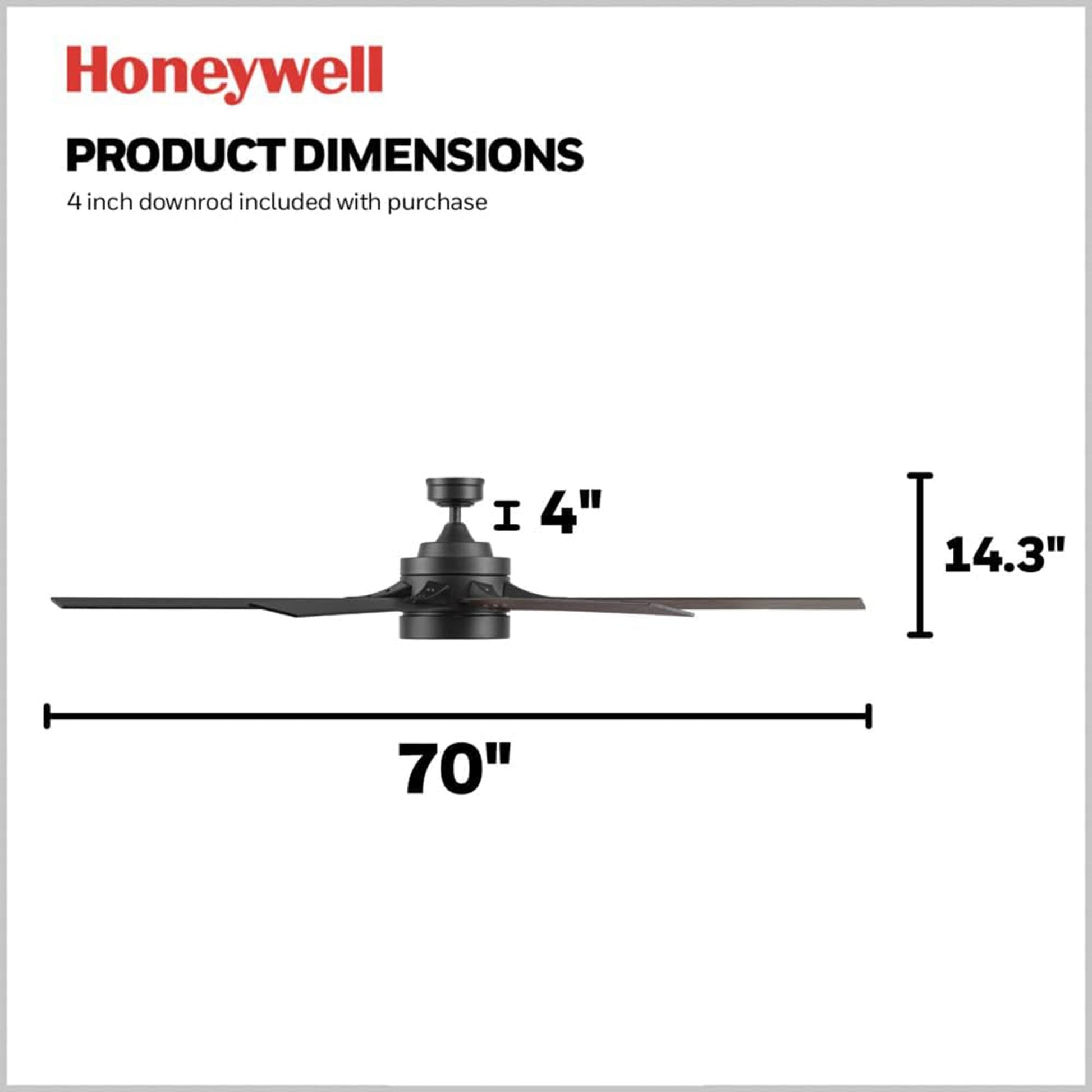 Honeywell Xerxes 70" Ceiling Fan w/ Remote Control, & Reversible Blades, Black