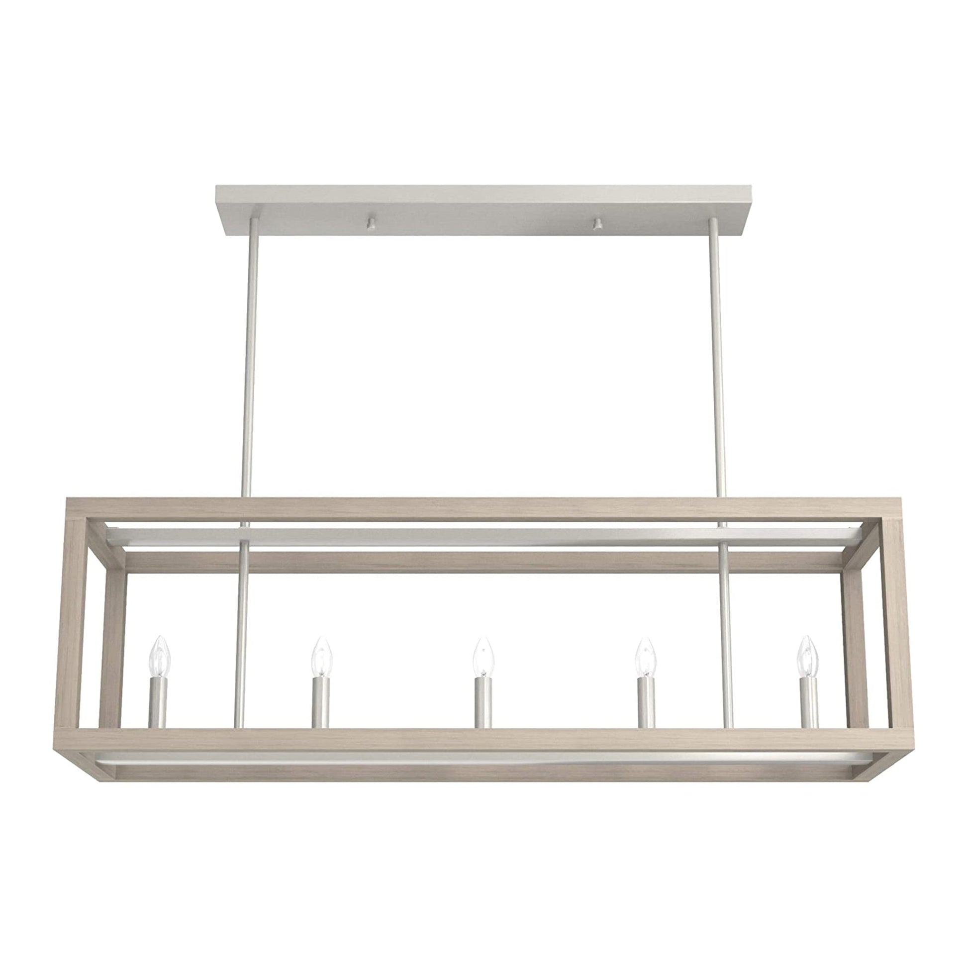Hunter Fan Company brings a minimalist and classic design to the Squire Manor 5 Light Ceiling Chandelier in brushed nickel and bleached wood that will complement any room in your home.