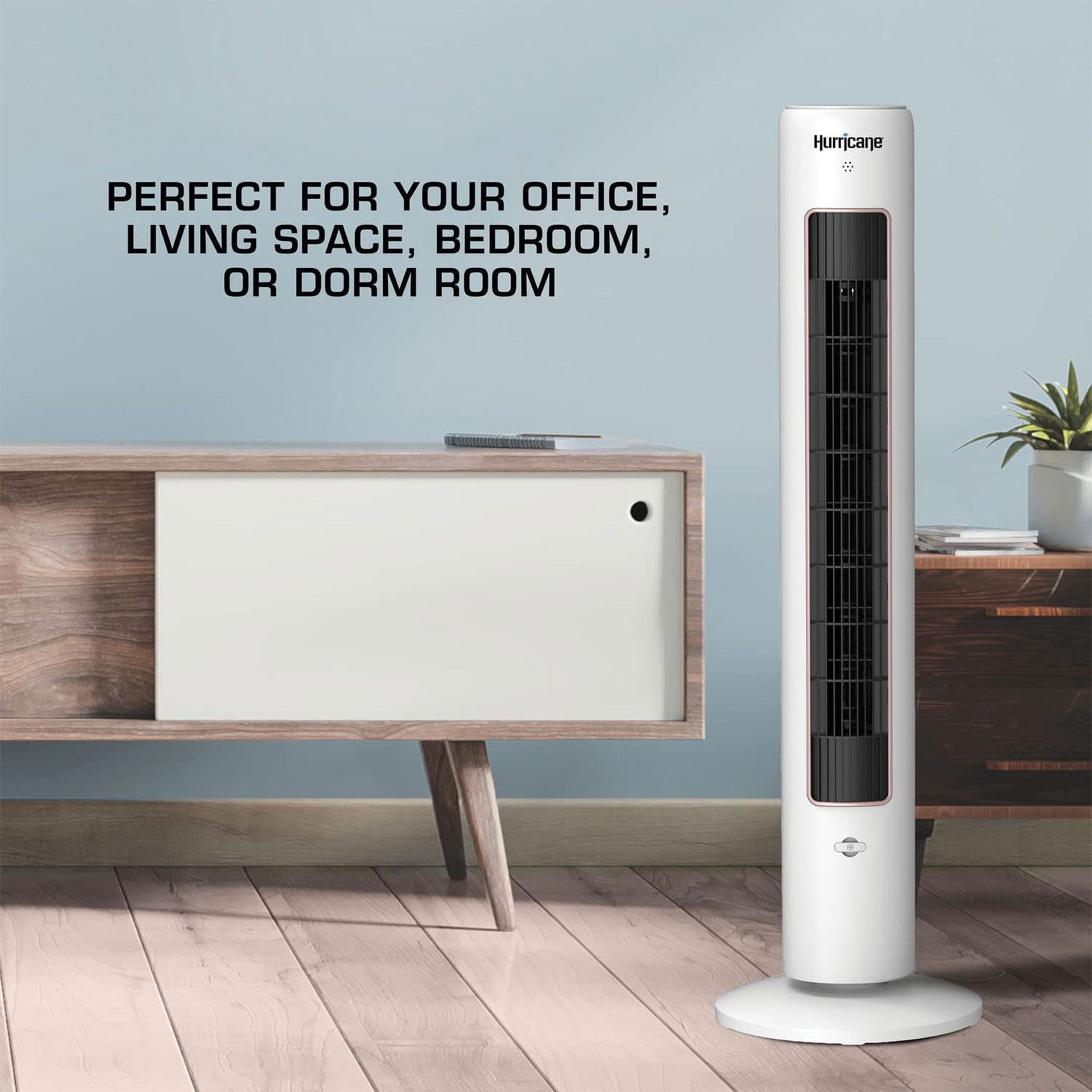 - Features 40-inch stature and modern design, the Hurricane at Home Tower Fans seamlessly integrates into any space, enhancing aesthetics while improving air quality