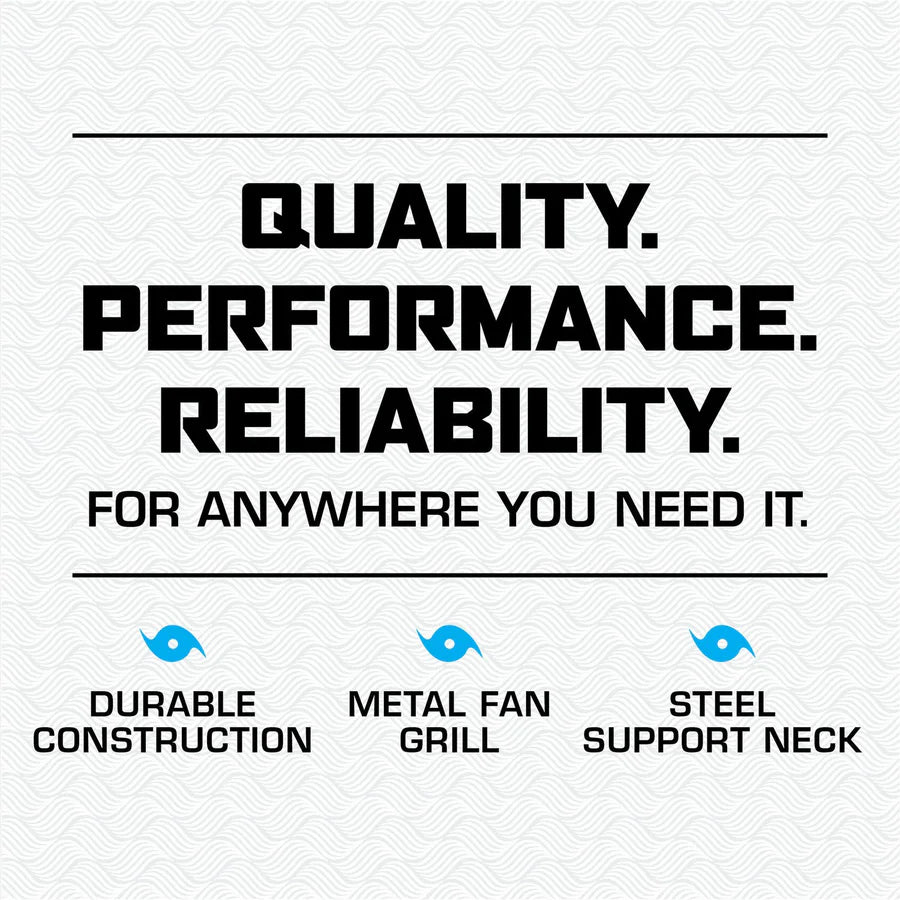 - Crafted for long-term durability, the fan features a robust metal fan grill and a strong steel neck, providing reliable support