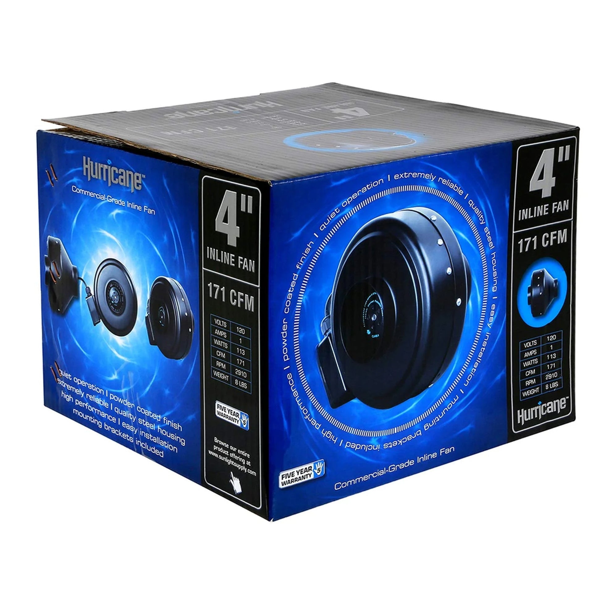 Unleash the cyclonic force of the Hurricane Commercial Grade Inline Fan, a formidable 4-inch powerhouse boasting a staggering 171 CFM. This inline marvel redefines high performance with its quality prowess. Encased in steel housing adorned with a robust powder-coated finish, this fan is not just robust, it's an industrial aesthetic statement.