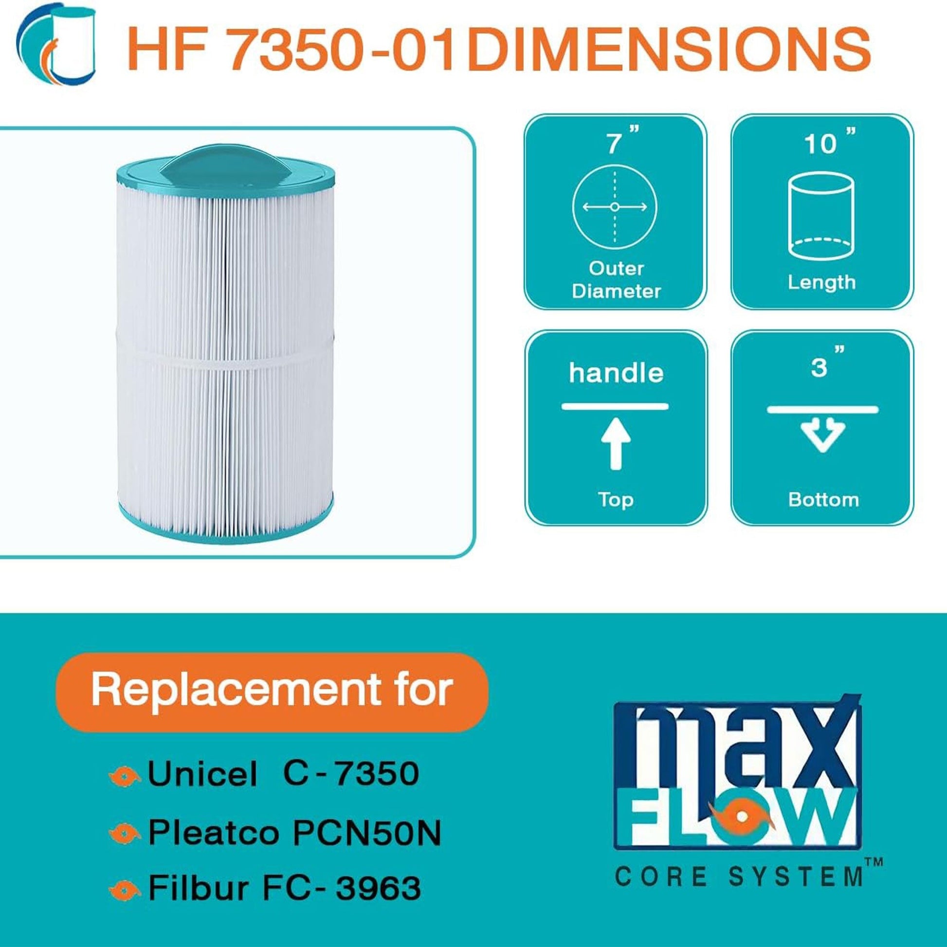 Dive into the realm of pristine waters with the Hurricane HF7350-01 Advanced Cartridge Filter, where unparalleled cleanliness awaits. Crafted with meticulous precision, this filter guarantees seamless compatibility with a range of models including PCN50N, Unicel C-7350, Filbur FC-3963, Caldera 50 (New Style), and other compatible models. With dimensions measuring 10.75 inches in length, an outer diameter of 7 inches, a top hole of 3 inches, and a bottom hole of 3 inches, achieving an ideal fit is effortless, measure your current filter for a flawless match.