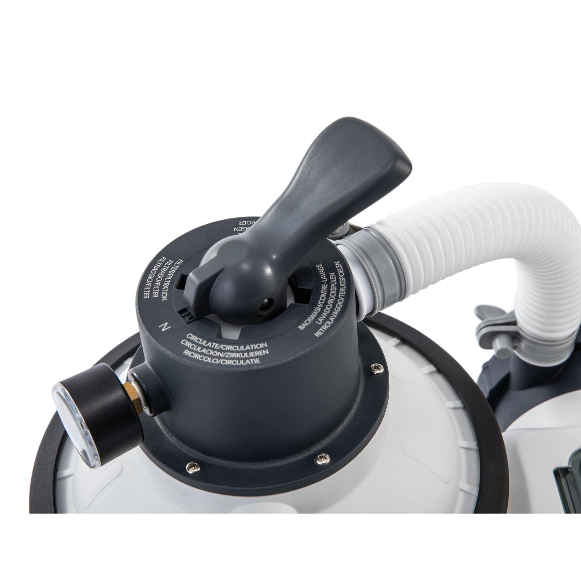 Sand filters keep your pool clean while saving on cost and time. The sand in the filter only requires a replacement once every 5 years, cutting the time you spend changing and cleaning pool filters while leaving your water clear and hygienic. Hydro Aeration Technology provides improved circulation and filtration for greater water clarity. Supporting the 4 functions, the filter allows filtration, circulation, backwash, and drain to support all aspects of the pool filter maintenance cycle. The built-in digital timer automatically turns the filter on and off each day, and the system can be run for up to 12 hours for a safe system.