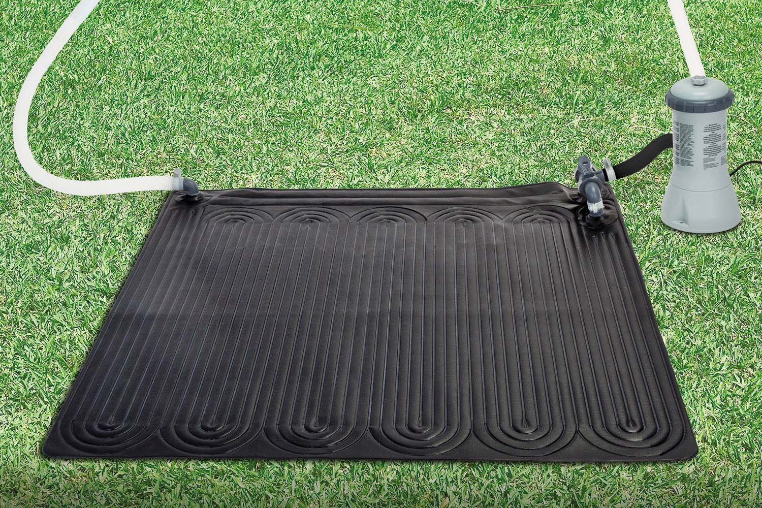 The **Intex Solar Heater Mat** is an energy-efficient way to capture the sun's rays to heat up your above-ground swimming pool. Designed to work with a variety of Intex filter pumps, this heater warms the water with solar heating technology.
