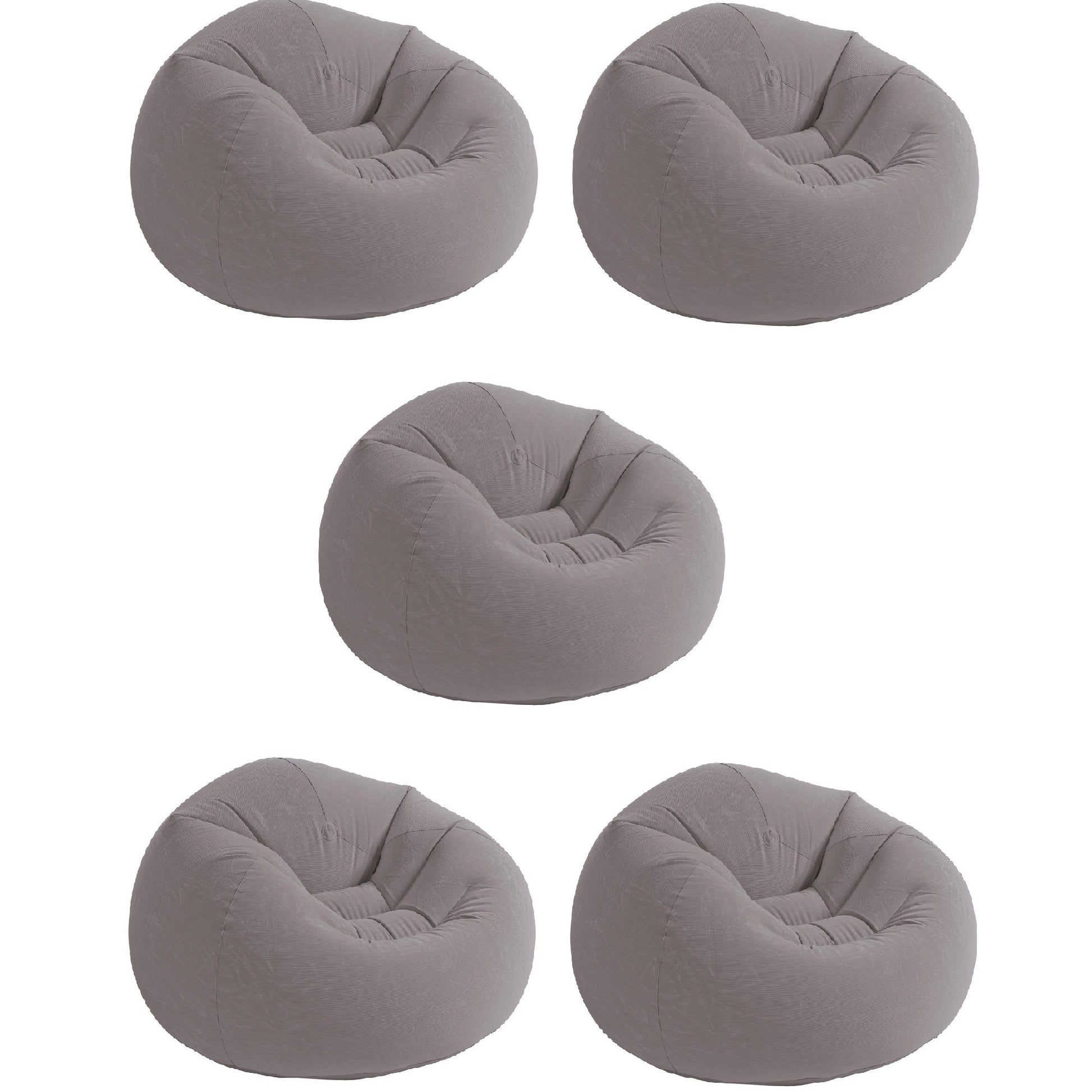 Intex Inflatable Contoured Corduroy Beanless Bag Lounge Chair, Gray (5 Pack)