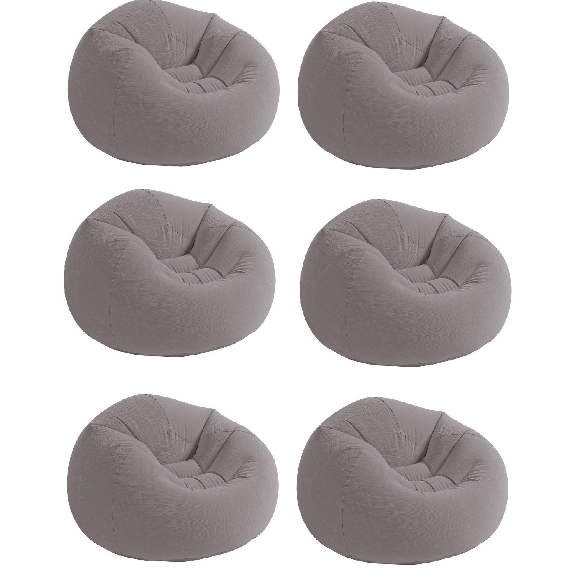 Intex Inflatable Beanless Bag Chair, Portable Blowup Lounge Seating, 6 Pack Gray