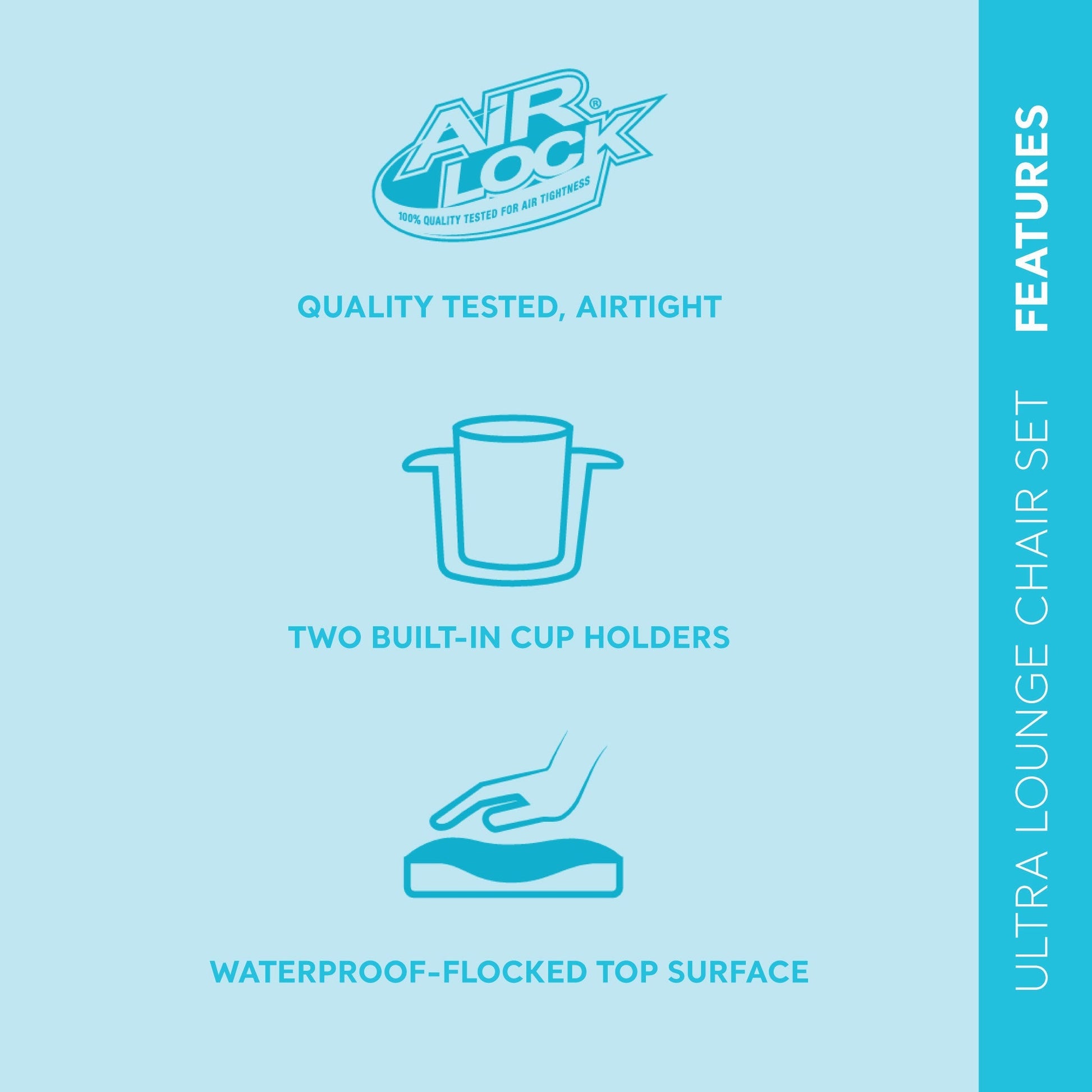 This set inflates and deflates quickly and features a comfortable flocked surface material, leisurely backrest, and an ottoman. Don't worry, a built in cup holder is there for you when you need an ice cold beverage after a long day. It is waterproof and comprised of sturdy PVC vinyl for a long life of peaceful relaxation. It can hold up to 220 pounds.