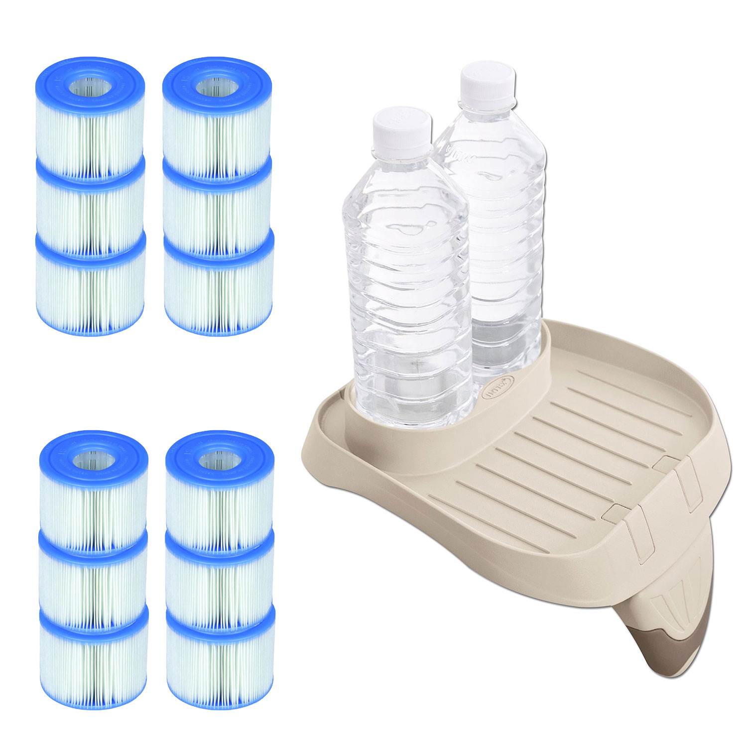 Intex PureSpa Attachable Cup Holder And Refreshment Tray with 12 S1 Pool Filters