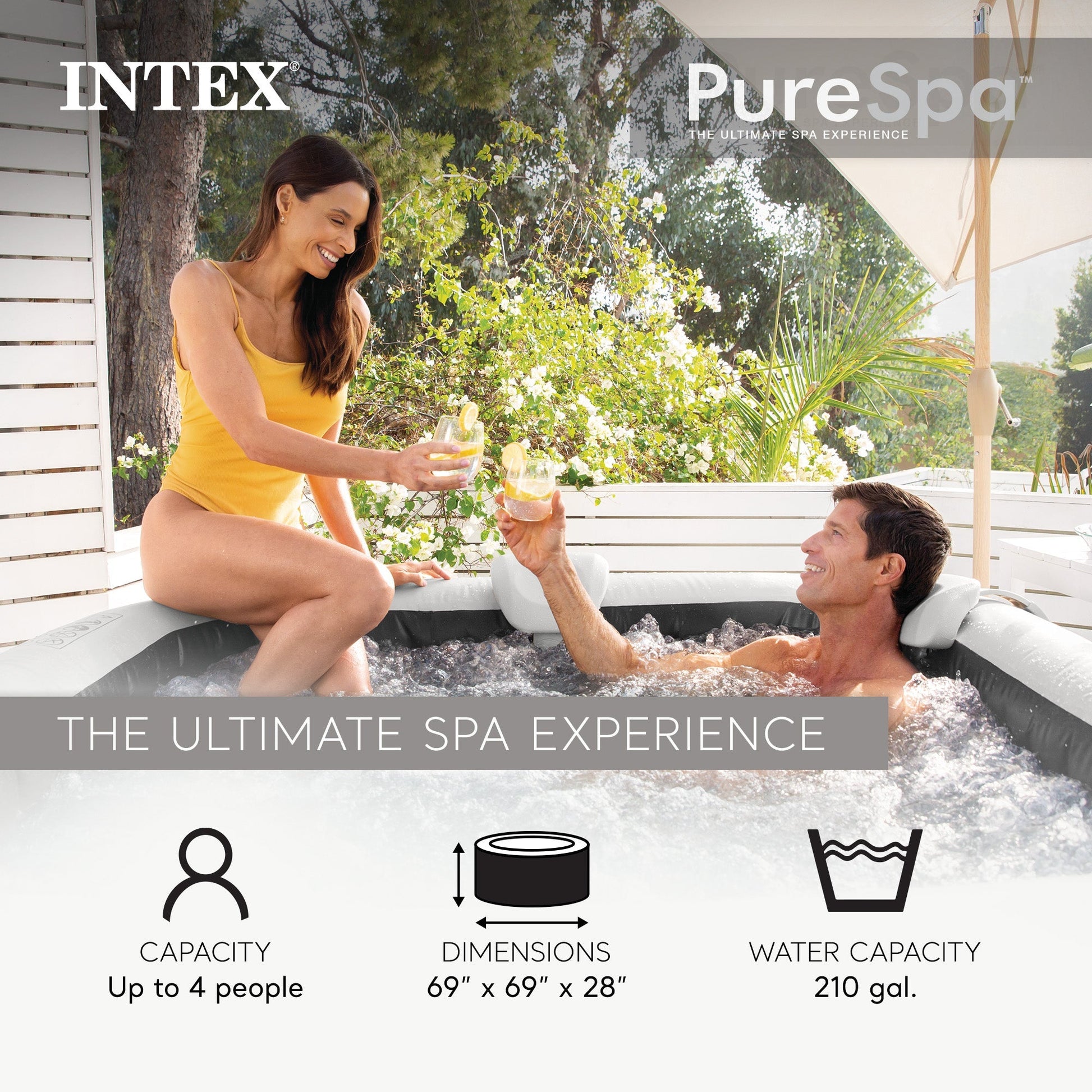 Intex PureSpa Greystone Deluxe 4 Person Inflatable Hot Tub Square Spa, 69" x 28"