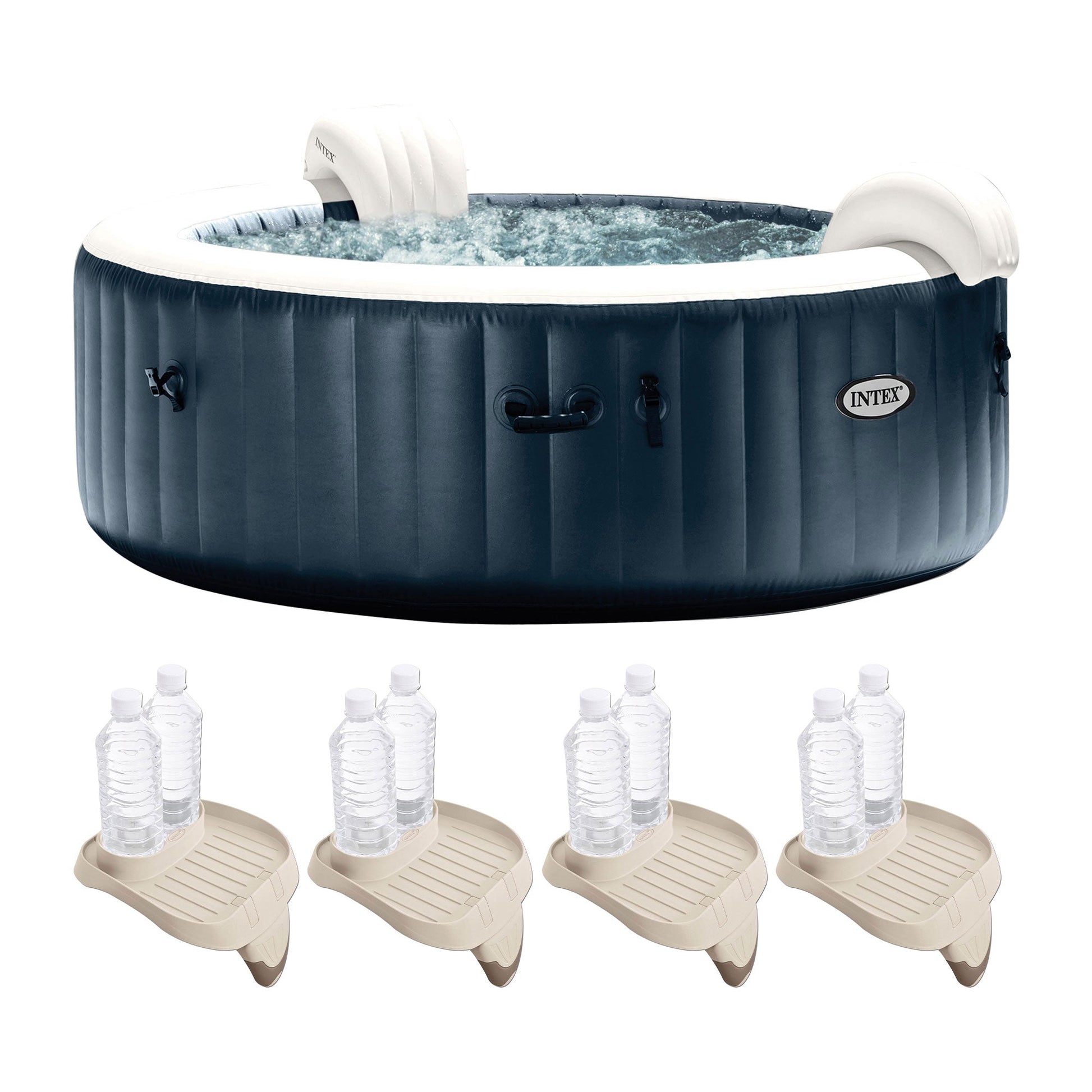 Let your worries bubble away as you unwind in the Intex PureSpa Plus Portable Inflatable Hot Tub and Attachable Cup Holder and Refreshment Tray 4-Pack.
