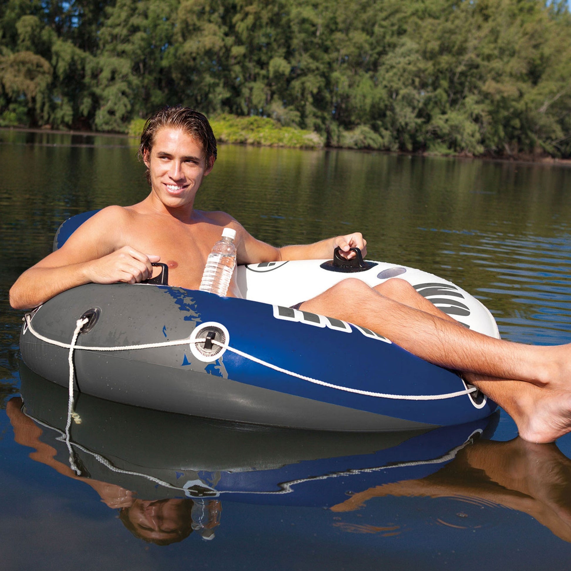 This 3-pack of Intex River Runs includes 4 inflatable tubes designed to fit adults, perfect for tubing down the river, in the lake, or in the pool. The Intex River Run is designed for high-performance fun without the hassle of black rubber tubes that can give you tube rash or that uncomfortable burning sensation in hot weather.