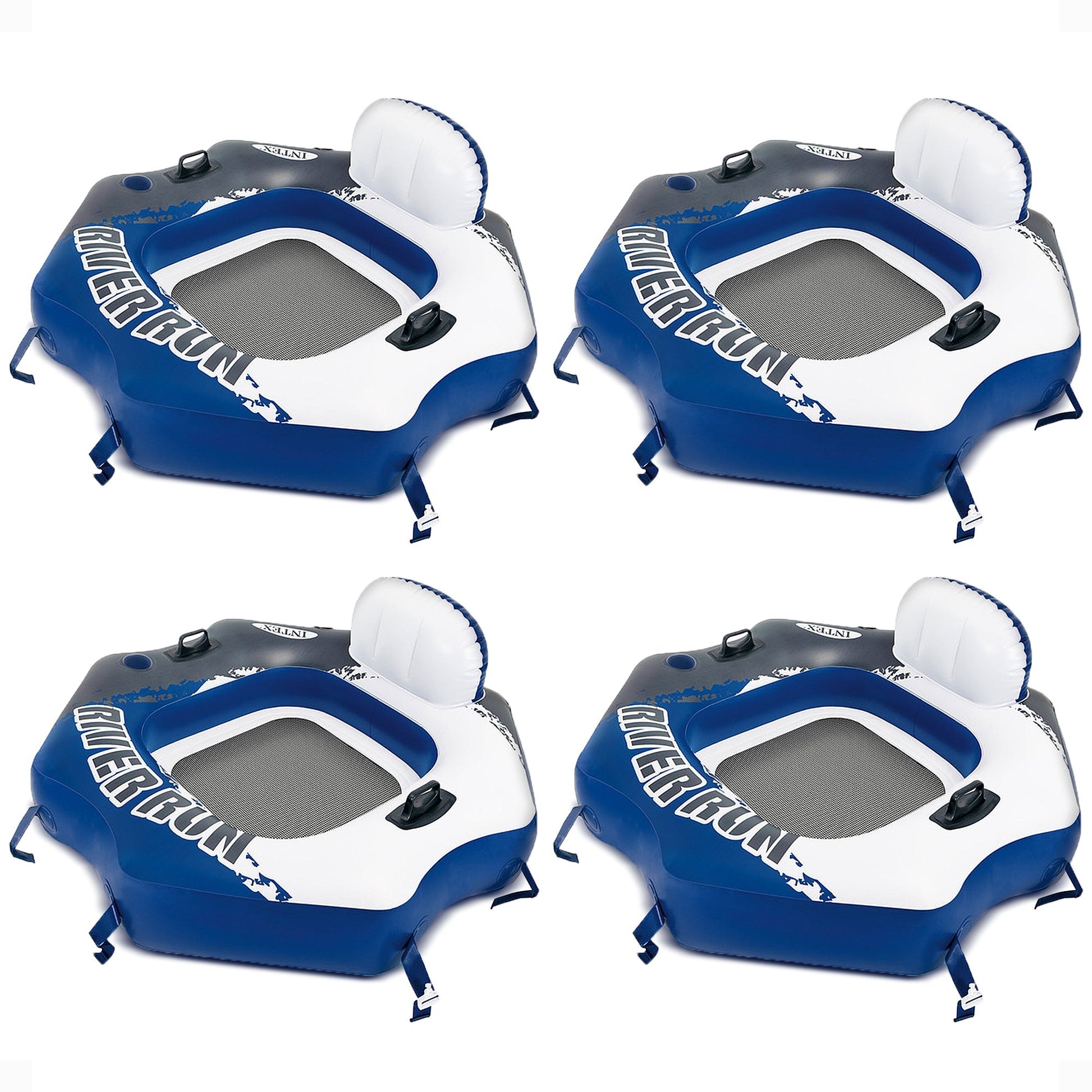 This 4-pack of Intex River Runs includes 4 inflatable tubes designed to fit adults, perfect for tubing down the river, in the lake, or in the pool. The Intex River Run is designed for high-performance fun without the hassle of black rubber tubes that can give you tube rash or that uncomfortable burning sensation in hot weather.