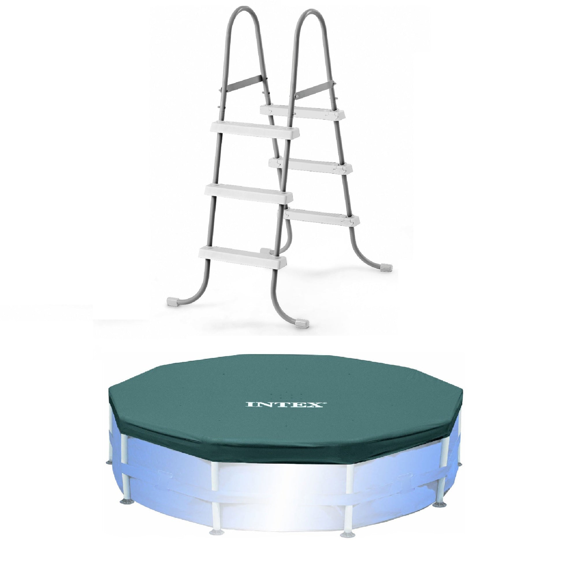 - Bundle includes Intex Above-Ground Pool Ladder for 42-Inch Wall Height Pools & Intex 15' Round Frame Above Ground Pool Debris Cover with Drain Holes