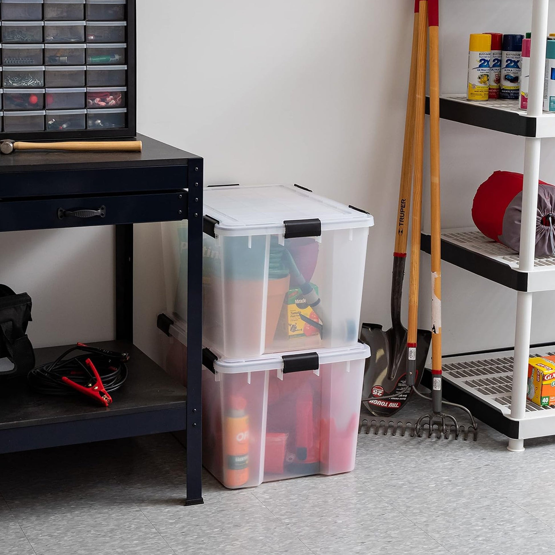 IRIS USA 74 Qt Storage Bins Plastic Gasket Box with Tight Latching Lids, 2 Pack