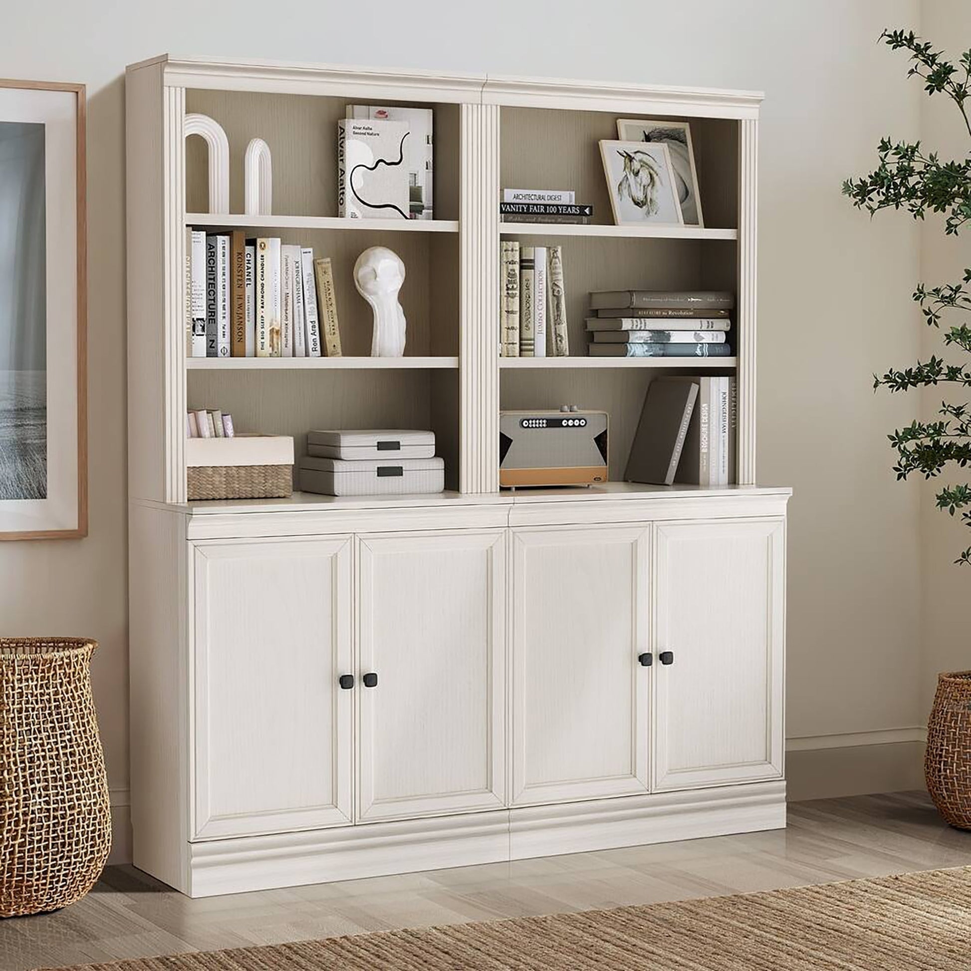 VAUXHILL & CO. Halston Multi-Depth Bookcase, Adjustable Shelving Unit, Doors, Cream