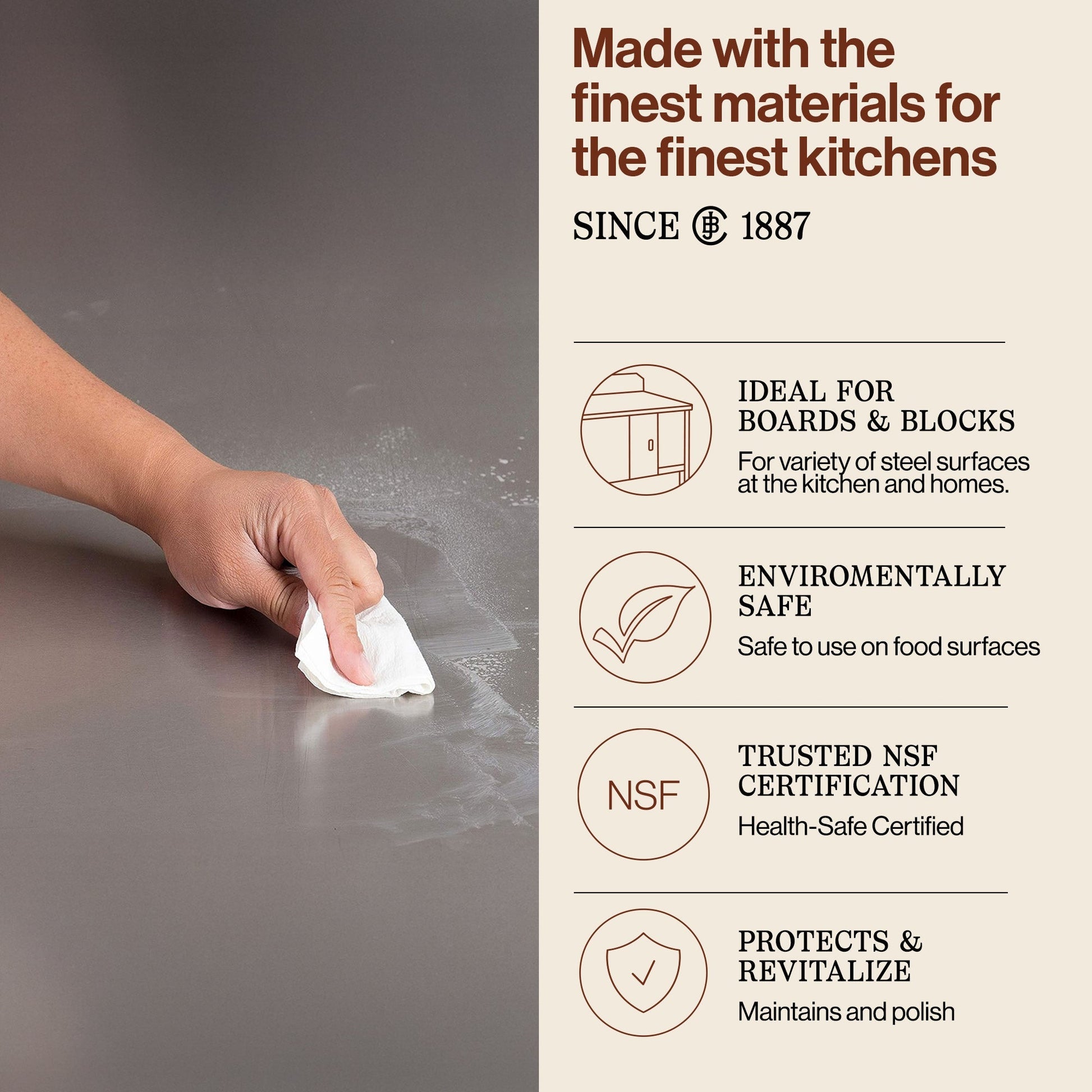 Rediscover the joy of a pristine kitchen with the John Boos Stainless Steel Cleaner, an 8-ounce elixir of brilliance that celebrates your kitchen's true potential.