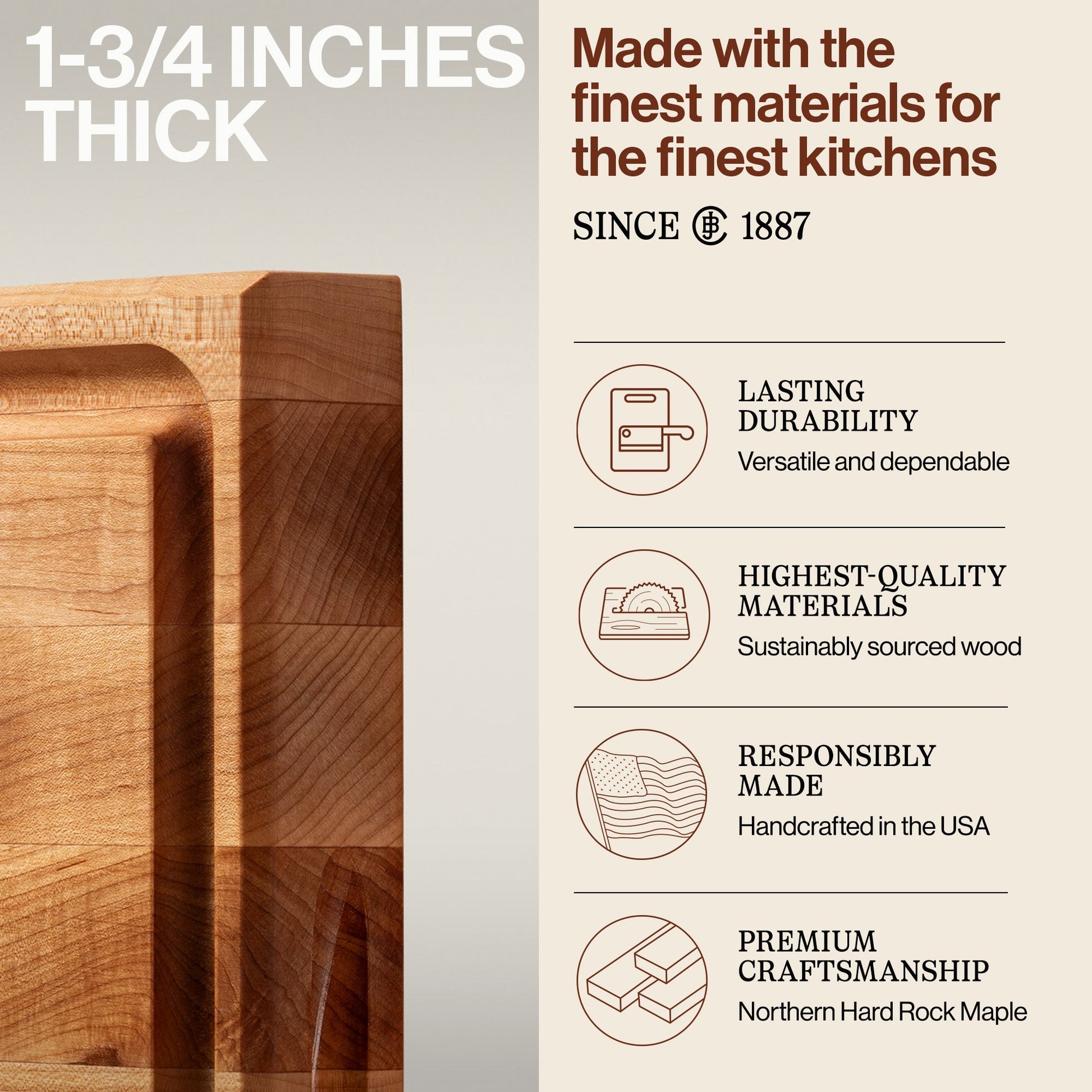 - Crafted from hand-selected American hard maple wood with edge grain design, the squared cutting board showcases quality in its construction