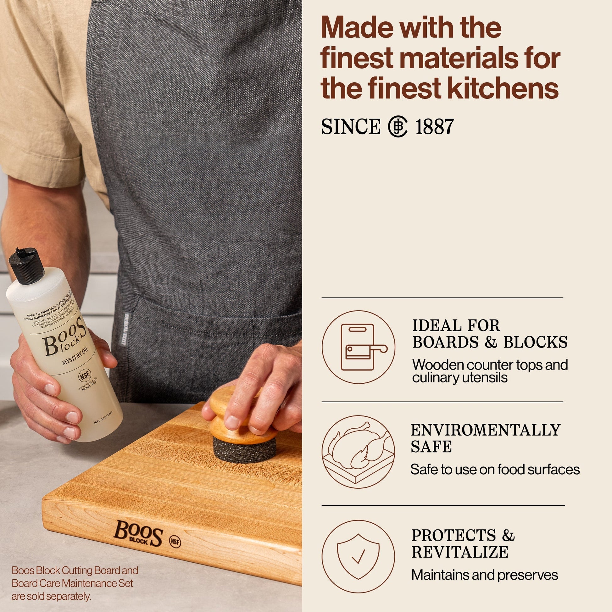 John Boos Block 32 fl oz Mystery Oil & Applicator Wooden Cutting Board Care Set