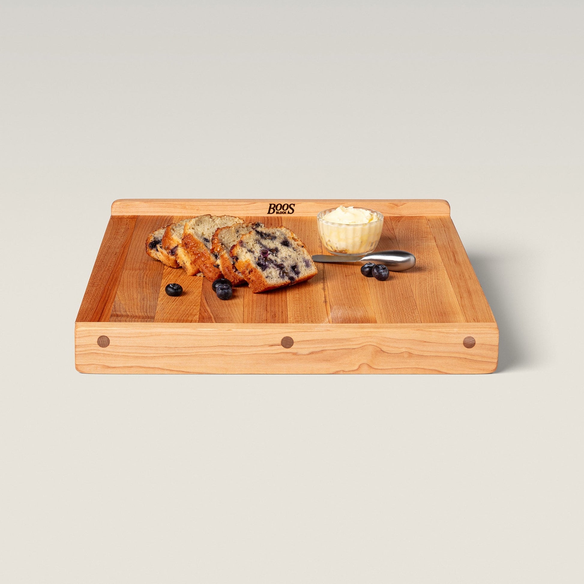 Made in our home and crafted for yours, the John Boos Countertop Collection wooden cutting board is a kitchen essential for BBQ aficionados and culinary enthusiasts. Handcrafted from high-quality wood and made in the USA, this professional cutting board is designed with a countertop lip to prevent the cutting board from sliding during chopping and slicing for a reliable cutting foundation. Featuring a substantial 1.25-inch thickness, this cutting board offers a sturdy and reliable cutting surface for all your culinary needs. The reversible board features a convenient juice groove on one side, preventing liquids from spilling onto your countertop surface and ensuring a mess-free cooking experience.