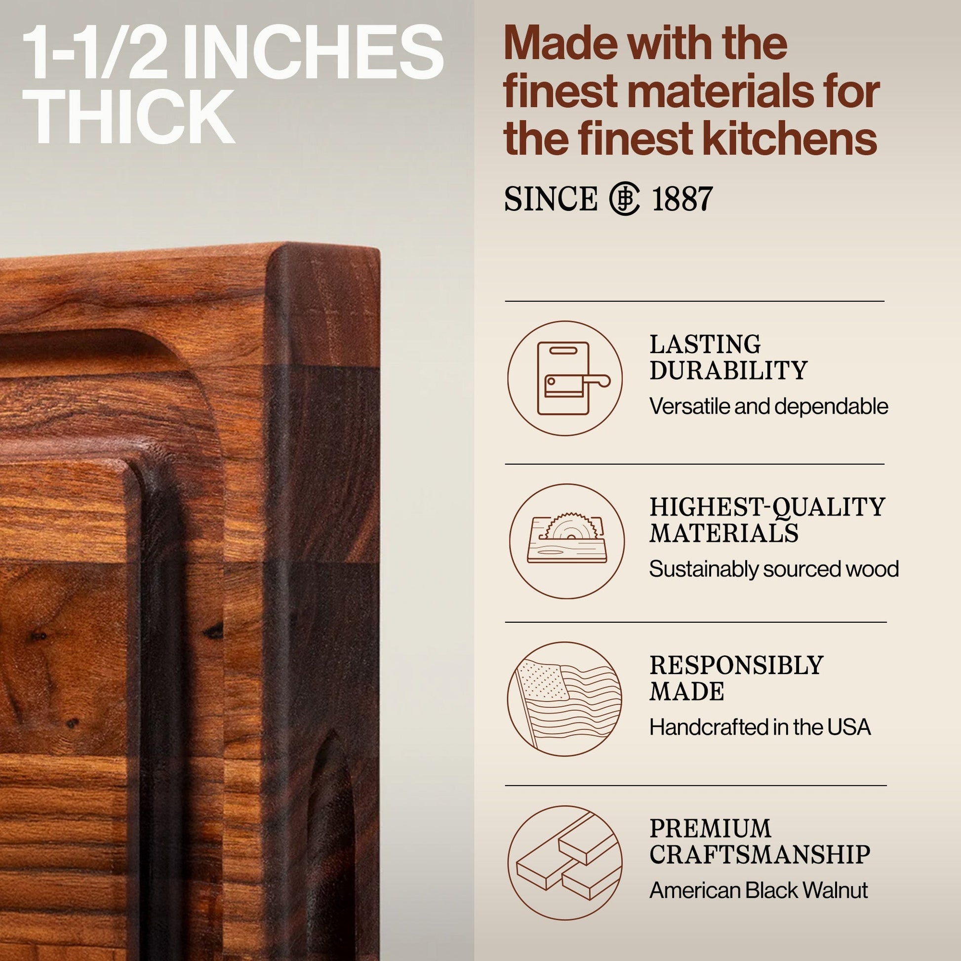 Made in our home and crafted for yours, the John Boos Professional Collection BBQ wooden cutting board is a kitchen essential for BBQ aficionados and culinary enthusiasts. Handcrafted from high-quality wood and made in the USA, this professional cutting board is designed to withstand constant cutting, chopping, and slicing with ease. Featuring a substantial 1.5-inch thickness, this cutting board offers a sturdy and reliable cutting surface for all your culinary needs. The reversible board features a convenient juice groove on one side, preventing liquids from spilling onto your countertop surface and ensuring a mess-free cooking experience.
