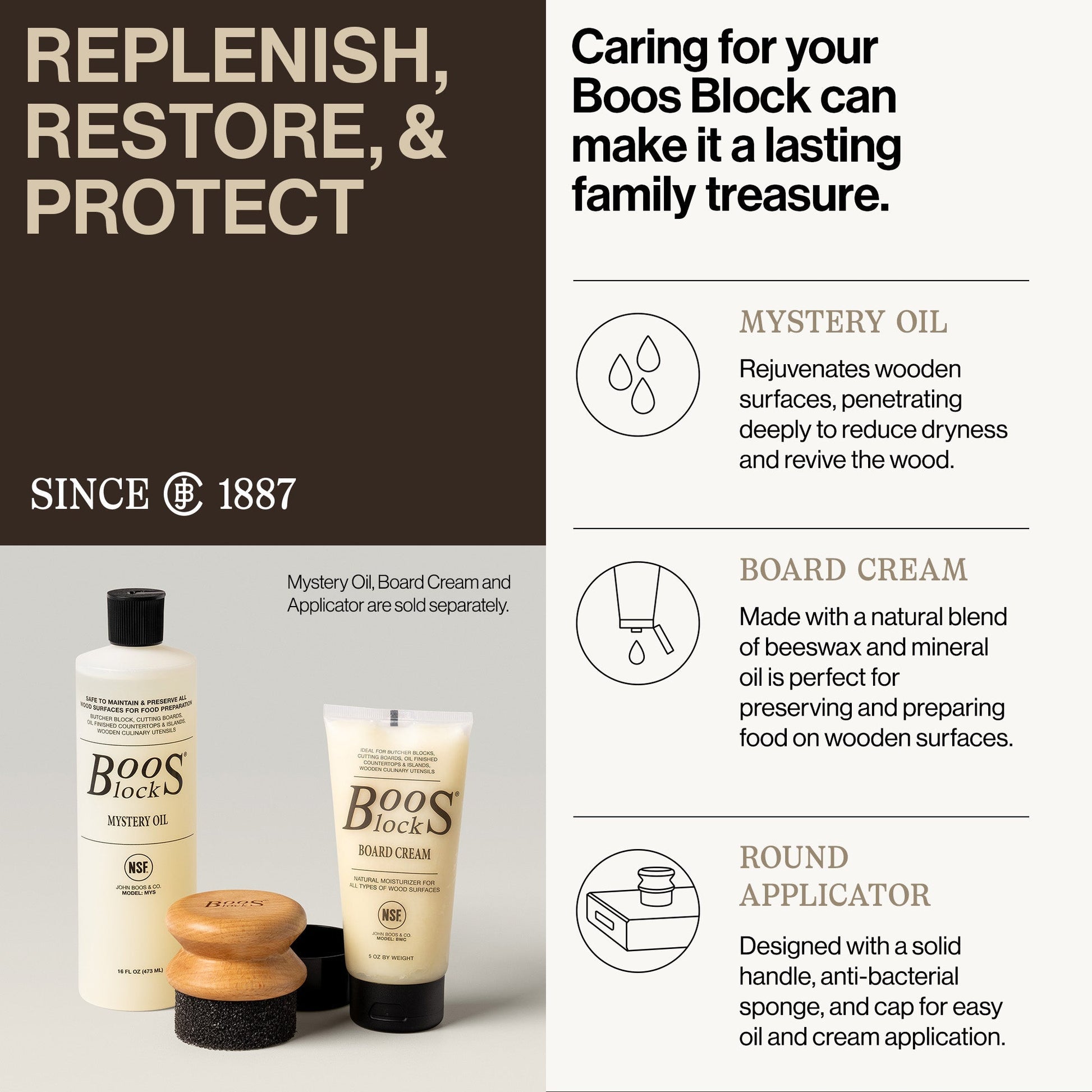 - Use the included 3-pack of Board Cream to protect the wood