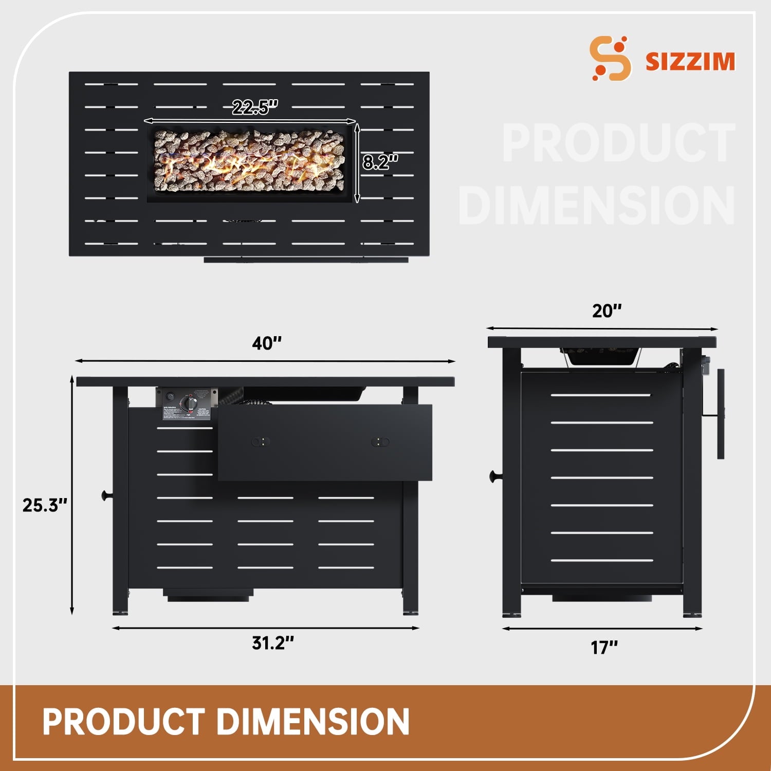 JolyDale 40" Propane Fire Pit Table, 50,000 BTU Auto Ignition Steel Gas Fire Pit with Removable Lid & Waterproof Cover for Patio, Backyard, Black