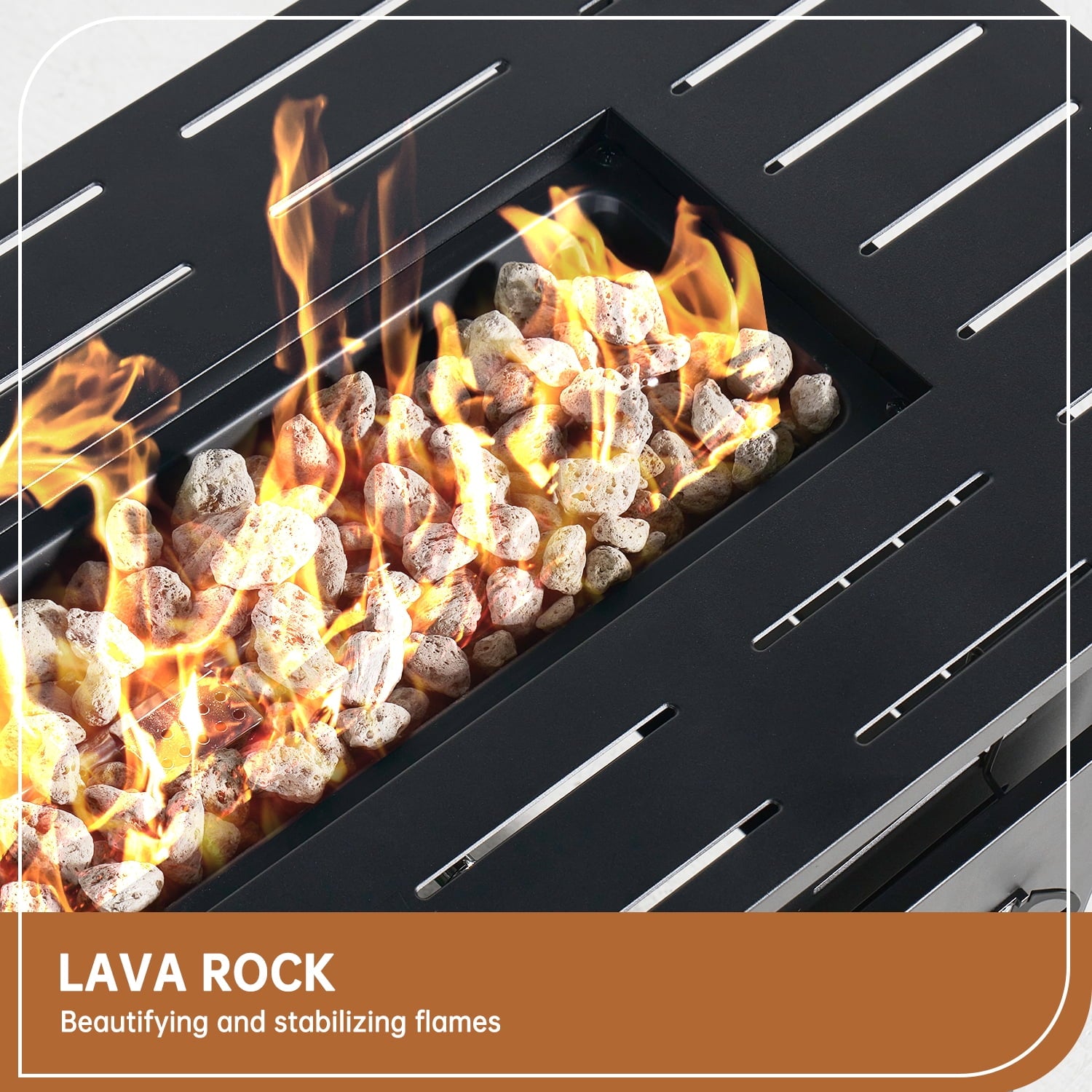Purchasing a JolyDale propane fire pit can make your parties special and strengthen the bonds between family and friends. In cold weather, the warmth from the fire allows you and your loved ones to enjoy more time outdoors. Besides its practical fire pit function, this patio fire pit table also serves as a stylish table when not in use. The 40-inch fire pit table provides ample space for drinks, snacks, or decorative items.