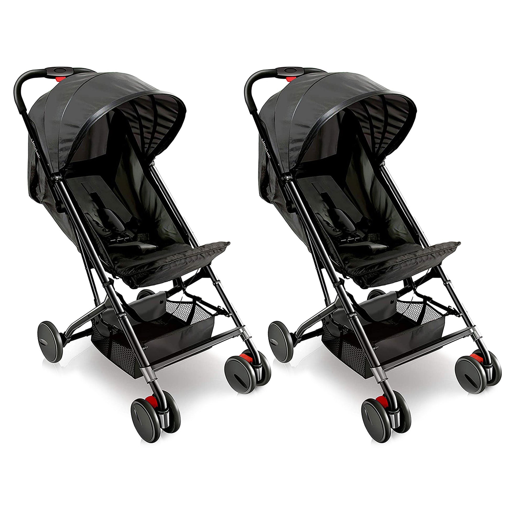 Jovial Portable Folding Compact Baby Stroller with Travel Bag, Black (2 Pack)