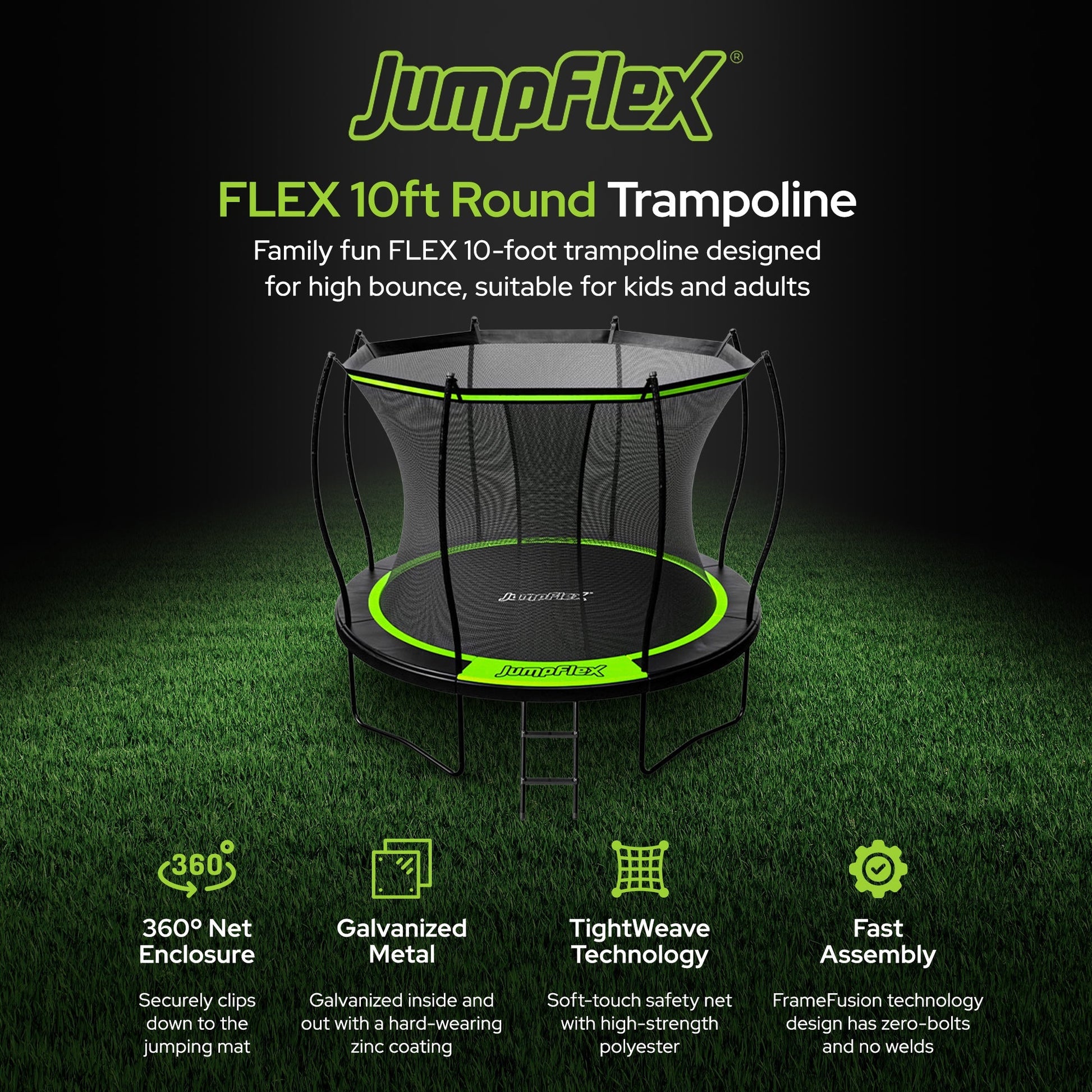 Jumpflex FLEX 10' Round Trampoline, Outdoor Play Equipment & Safety Net & Ladder