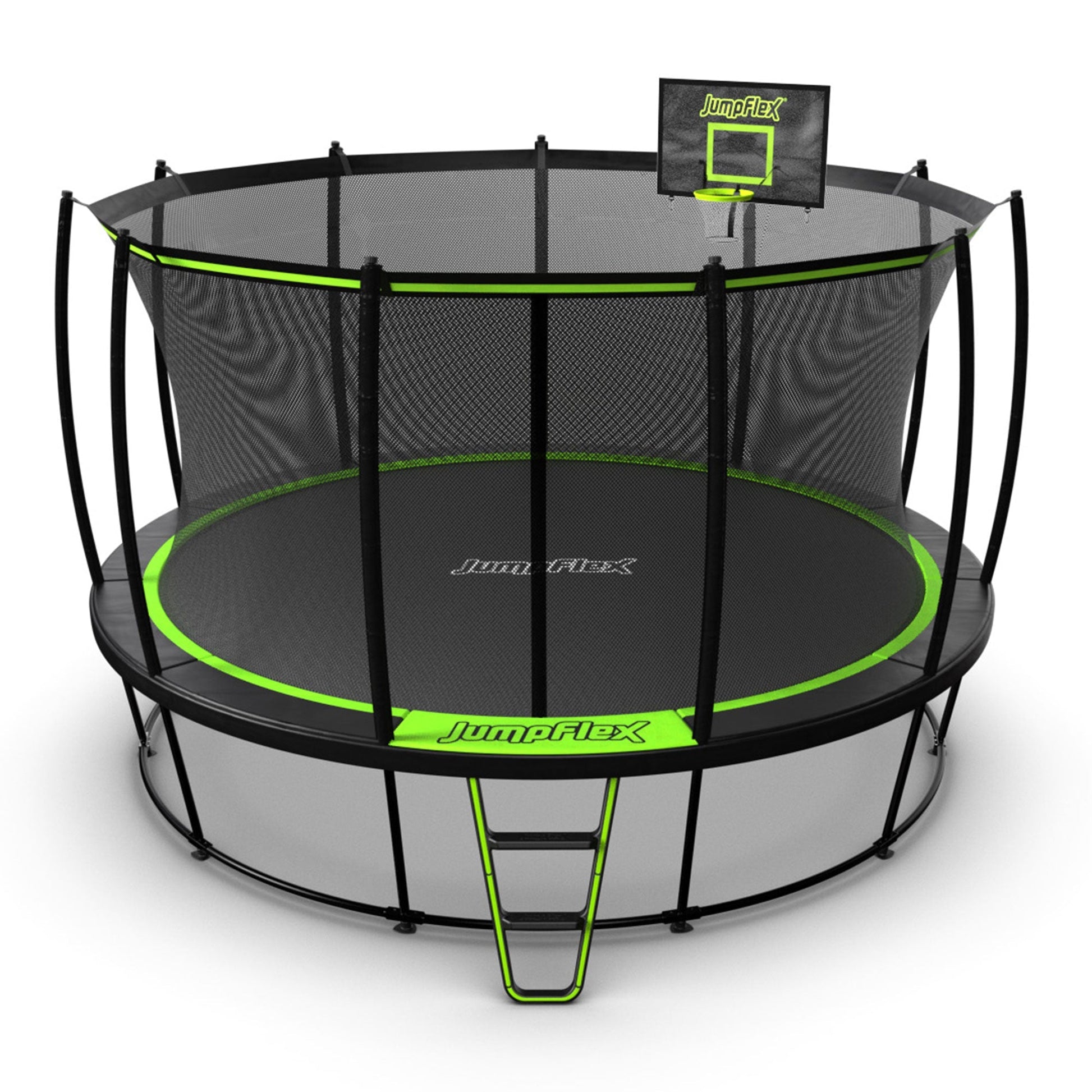 Start jumping into great fun and exercise for the whole family with the HERO 14-Foot Trampoline with Basketball Hoop from JumpFlex.