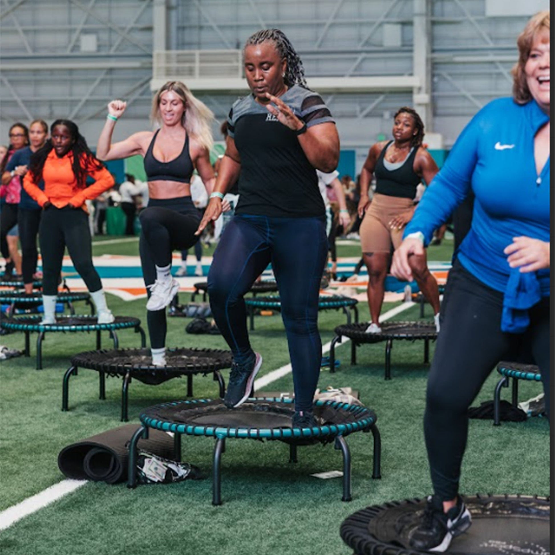 - Trampoline with a 32.5-inch jumping surface, ideal for adding versatility to workout routines for fitness enthusiasts of all levels