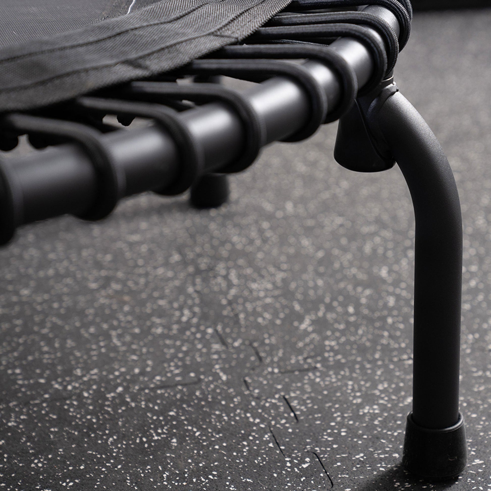 Workout without worry and step up with confidence to add versatility to your fitness routine. No-tip arched legs are safe, reliable, and allow you to stack multiple units in a commercial setting. The mat extension skirt and petal designs protect jumpers from stepping on the cords and provide more exercise space, while the trampoline legs and 12.5 inches high frame are stable enough for push-ups, dips, and more.