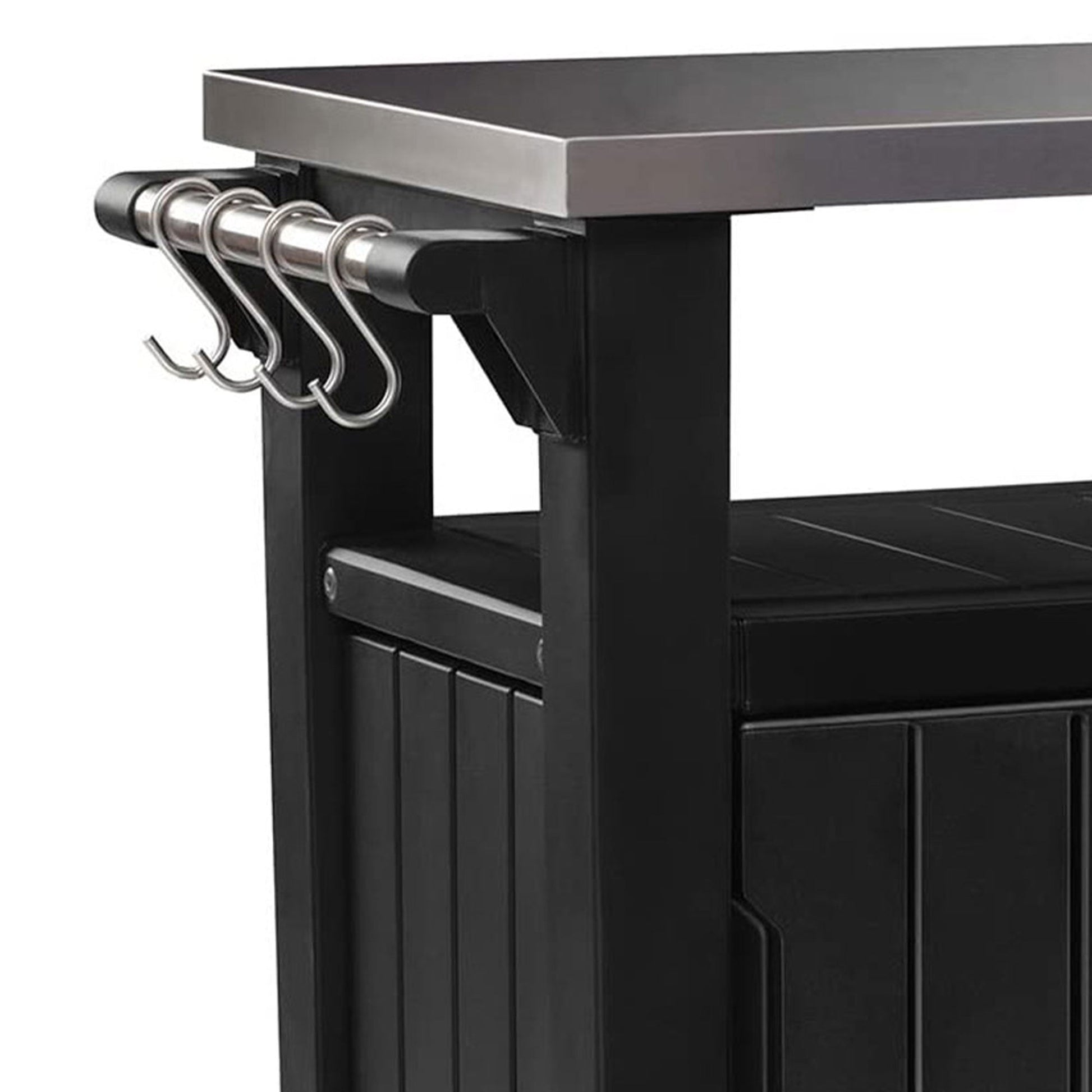 Keter Unity 40 Gal Patio Storage Grilling Bar Cart w/ Stainless Steel Top, Grey