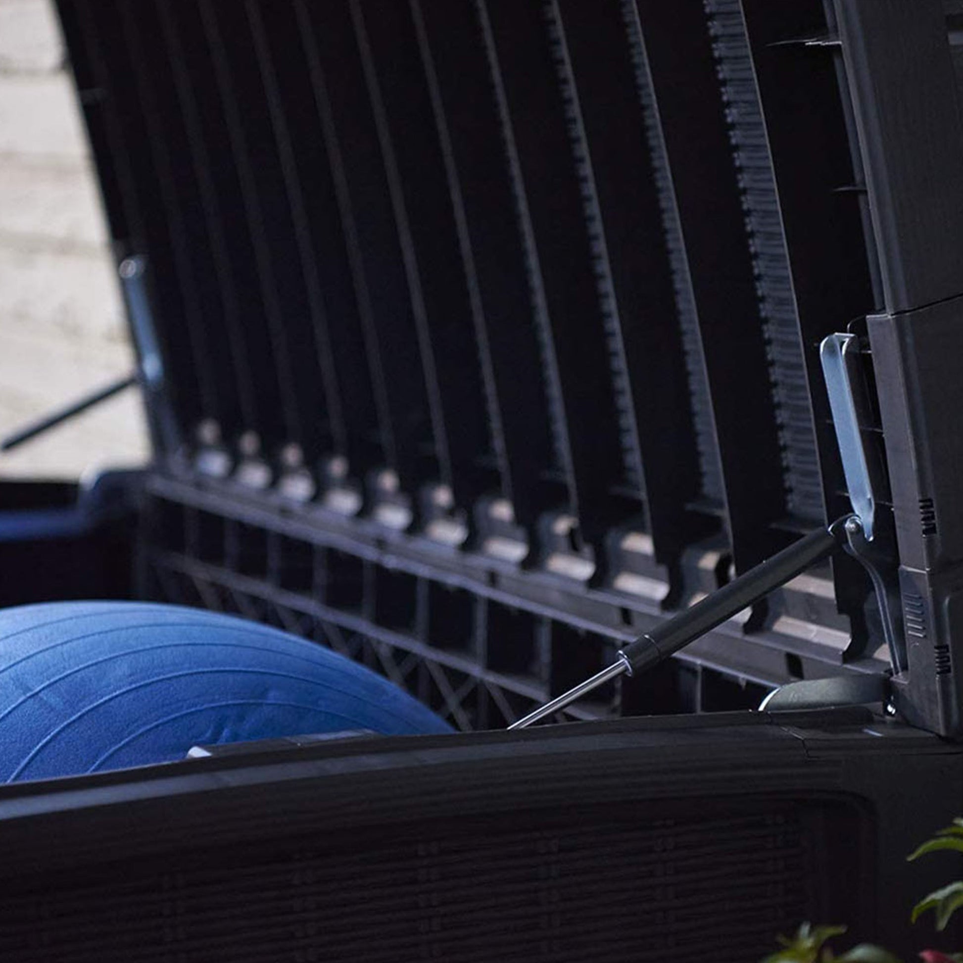 - Includes (2) large, 110-gallon outdoor storage boxes built to store patio accessories, cushions, pool toys, garden tools, and more