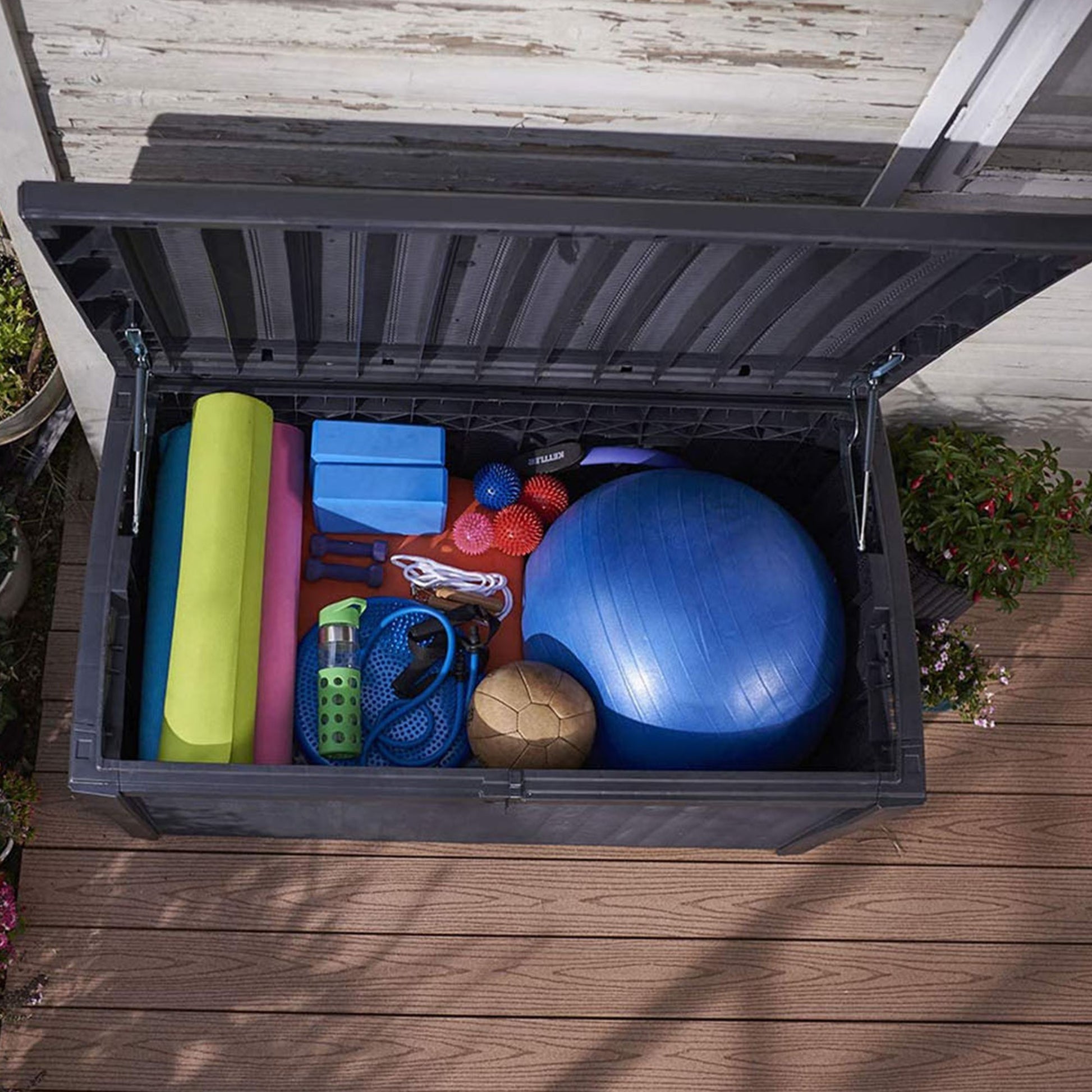 Prioritize your outdoor furniture and invest in a storage bin to keep your beach towels and patio furniture secure with the 2-Pack of Borneo Deck Storage Box from Keter.