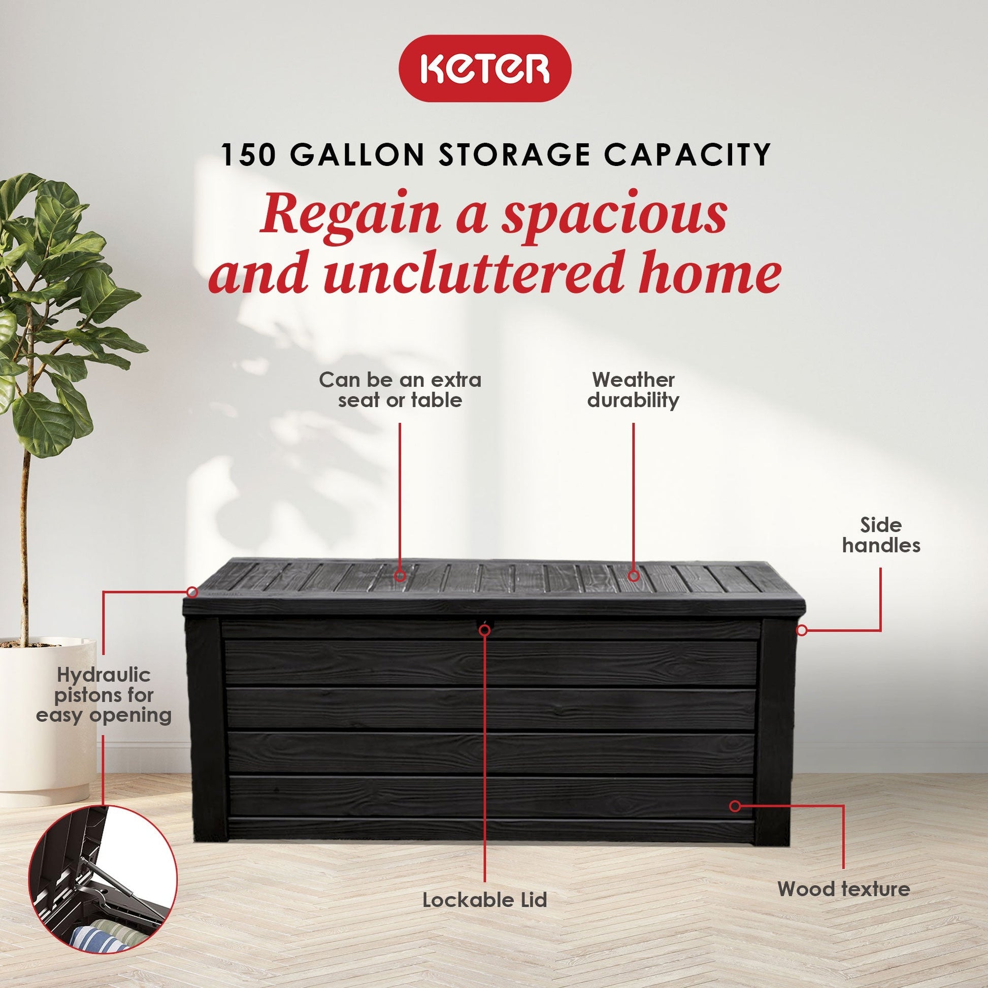 Keter Westwood 150 Gallon Plastic Outdoor Furniture Storage Deck Box, Dark Gray