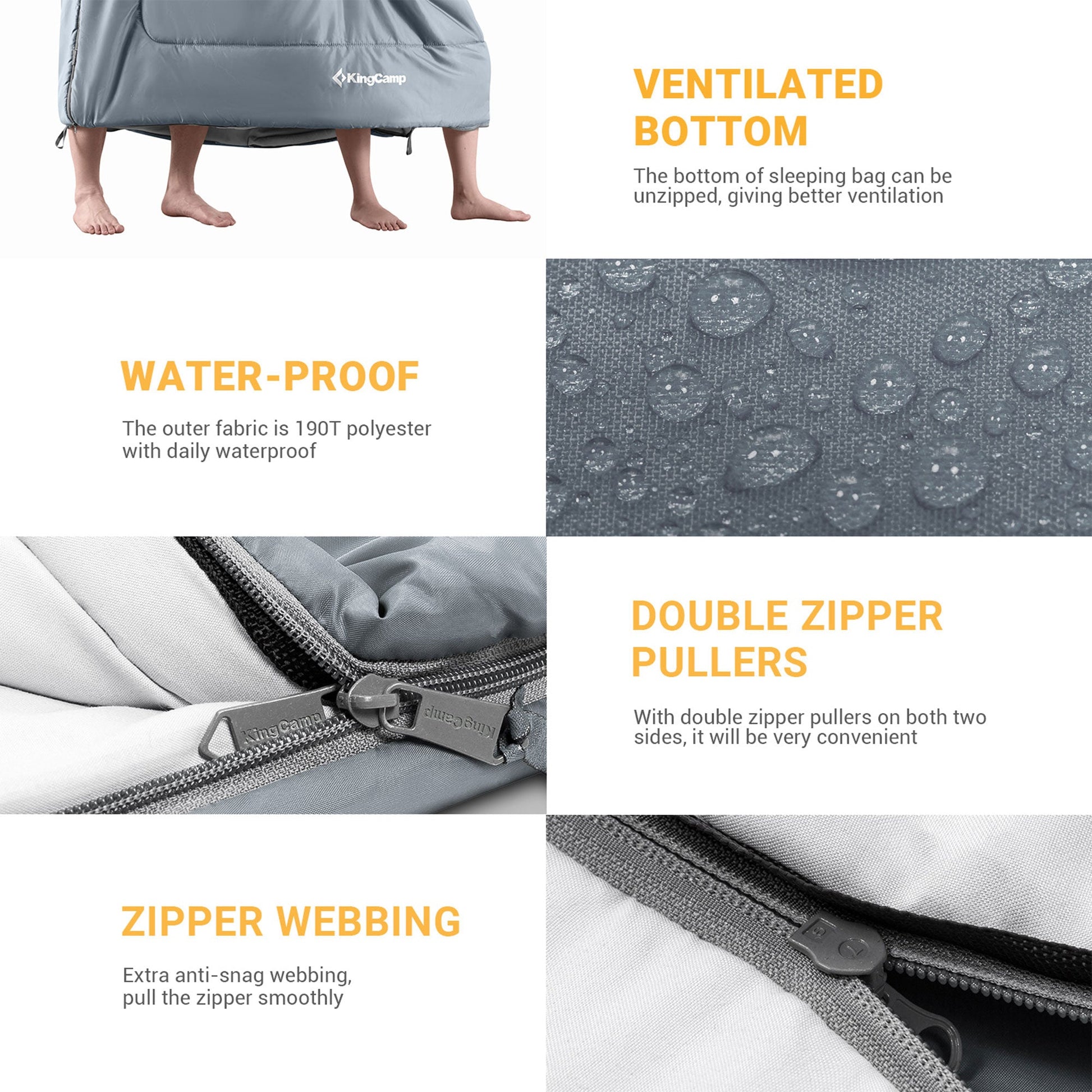 - Double-sided zipper makes it easy to get in and out while also allowing you to adjust the temperature inside