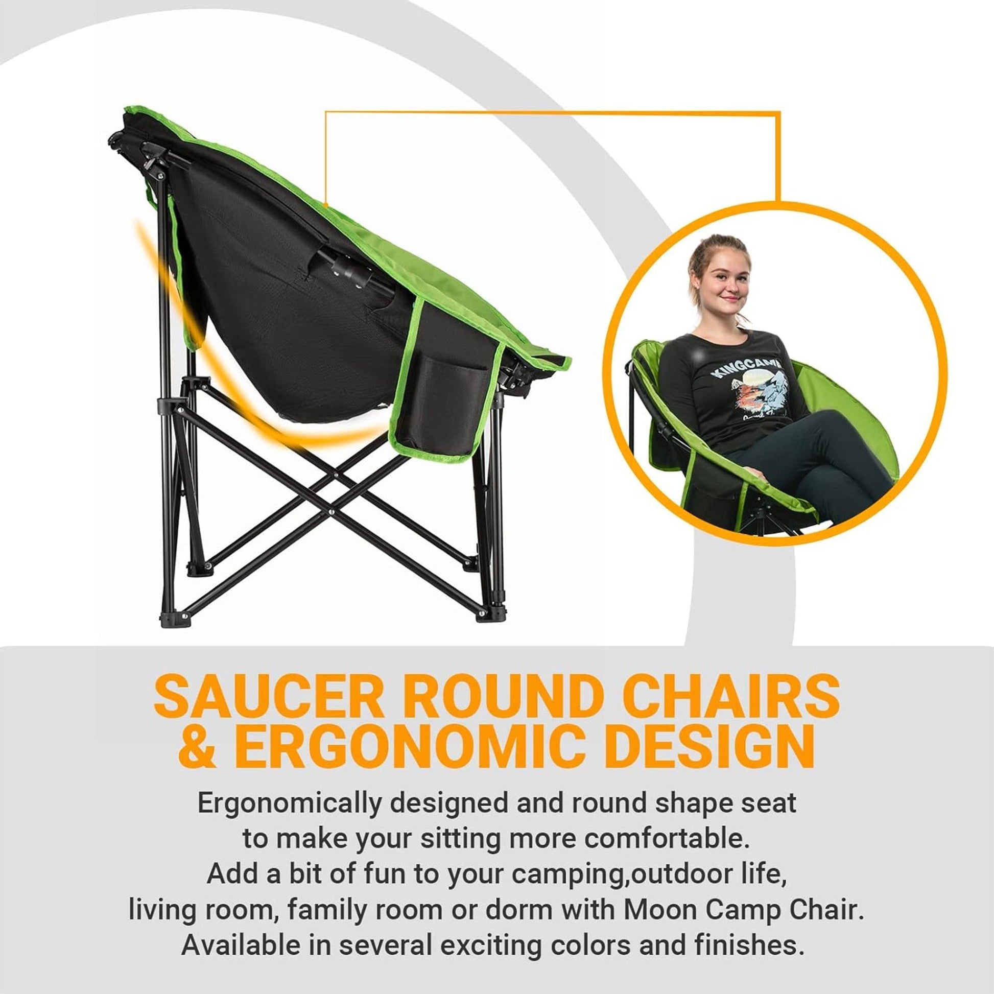 KingCamp Foldable Saucer Camping Lounge Chair w/ Cupholder Storage, Black/Green