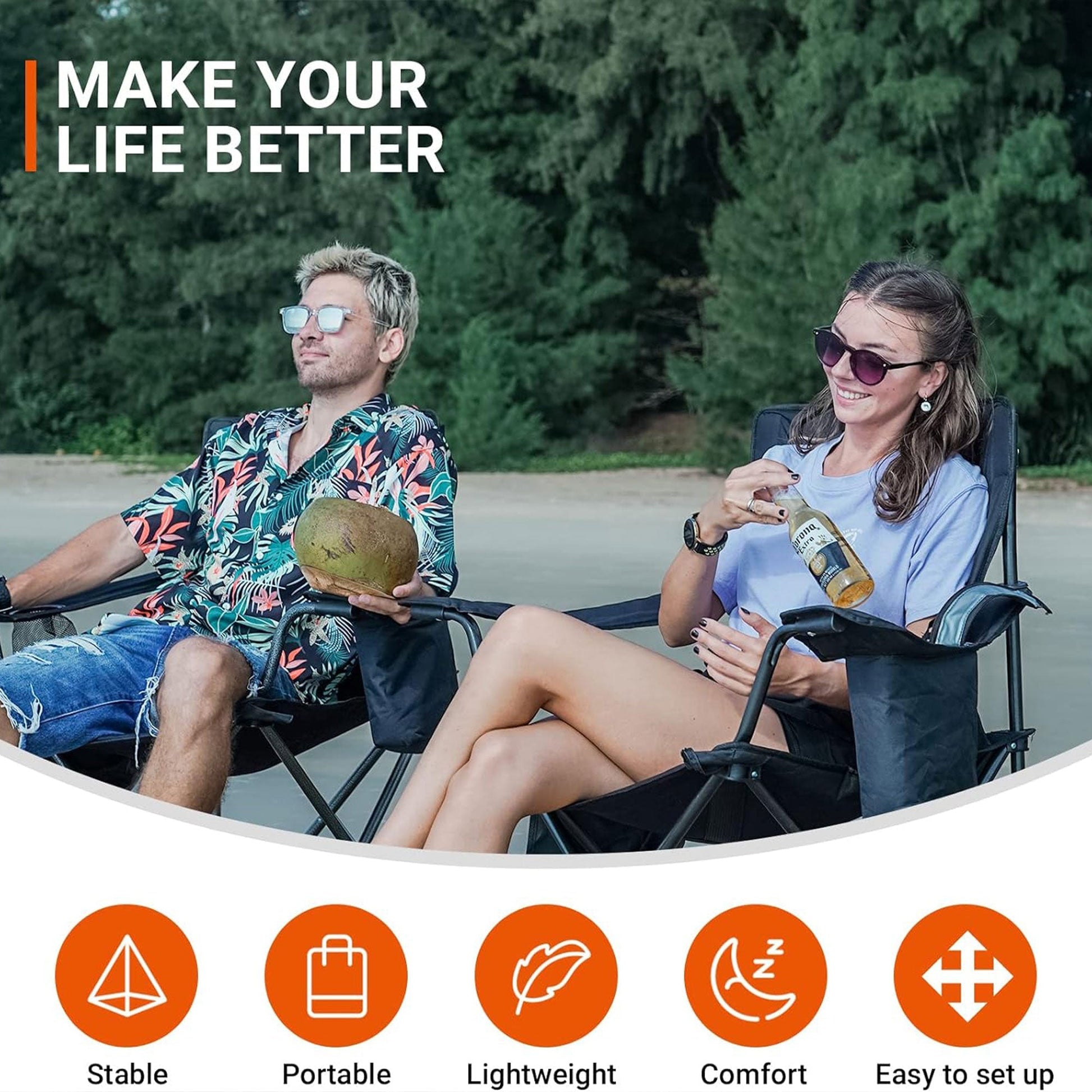 This beach chair's well-designed structure, coupled with practical features, makes it a convenient seating solution for various activities. Enjoy your camping trips, outdoor parties, or fishing trips more with the Padded Folding Chairs made by KingCamp.