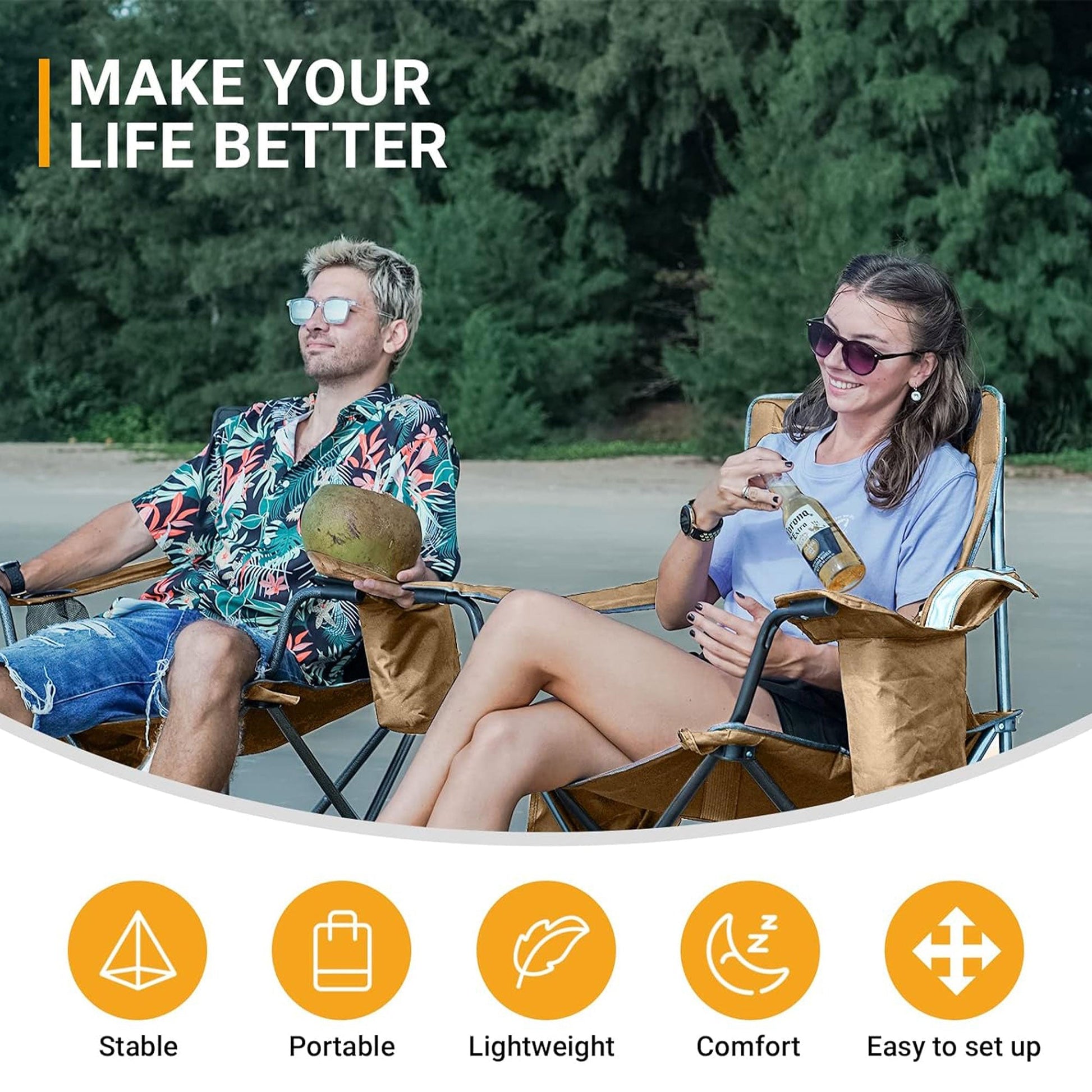 KingCamp Padded Oversized Folding Chair with Cupholder, Cooler, & Pocket, Khaki