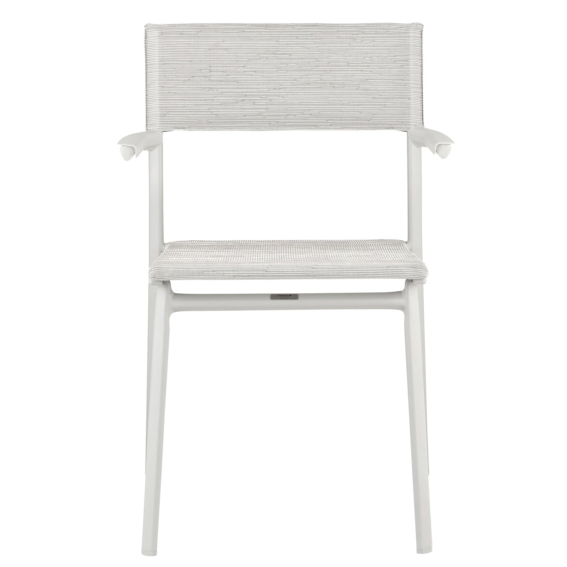 Built with a sturdy and durable base made from recycled aluminum and plastic, this armchair is lightweight, rust-free, UV and weather-resistant to withstand the elements while supporting up to 287 pounds. The tear-resistant Batyline Iso fabric is suitable for outdoor furniture around swimming pools or harsh weather, as the open weave design doesn't retain water.