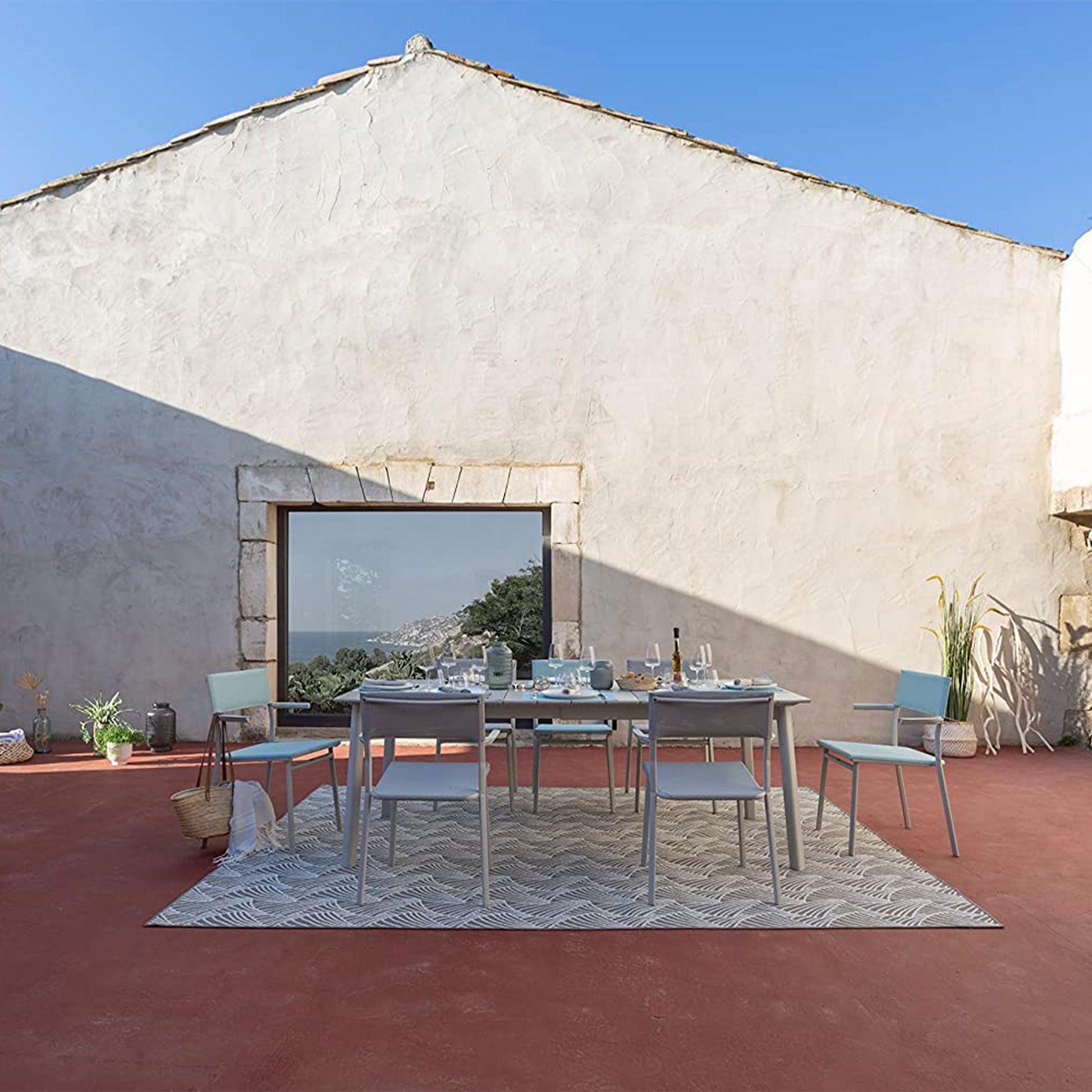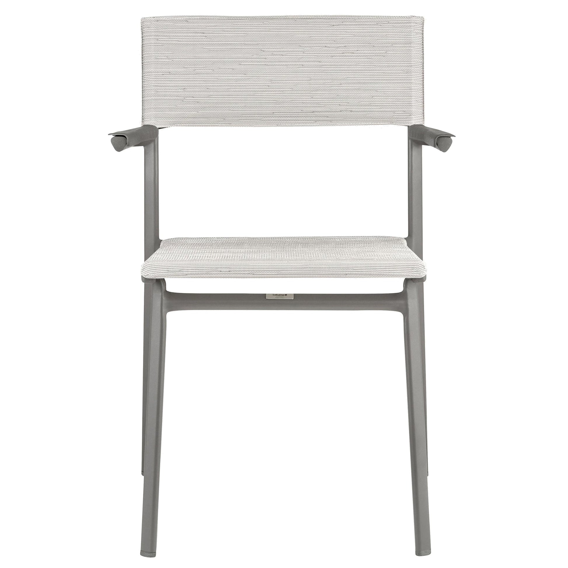 Built with a sturdy and durable base made from recycled aluminum and plastic, this armchair is lightweight, rust-free, UV and weather-resistant to withstand the elements while supporting up to 287 pounds. The tear-resistant Batyline Iso fabric is suitable for outdoor furniture around swimming pools or harsh weather, as the open weave design doesn't retain water.