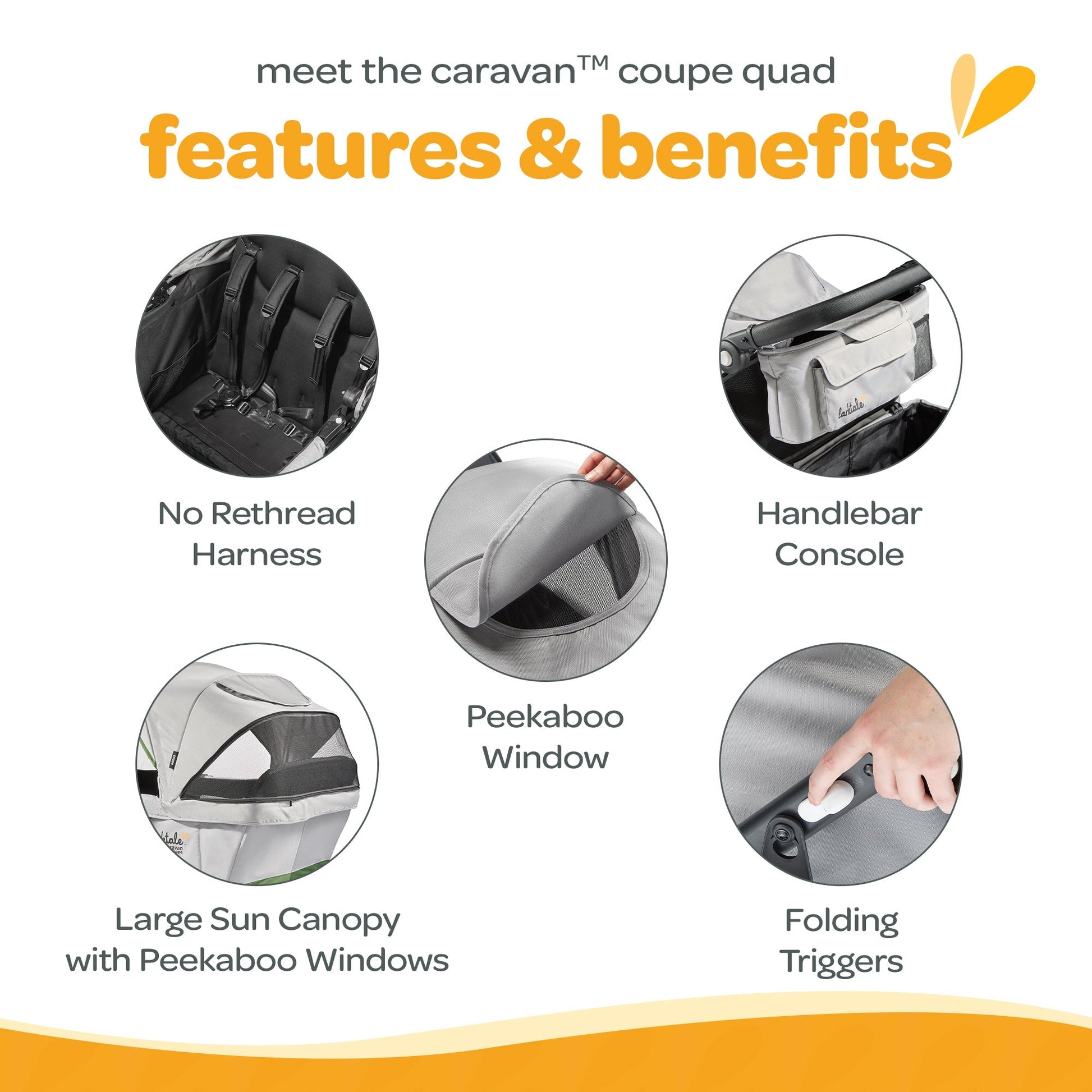 Get the compact convenience of a stroller with the versatility of a wagon with the Larktale Caravan Coupe Quad Stroller Wagon. This innovative design offers unparalleled functionality, making it the perfect companion for your family's adventures.