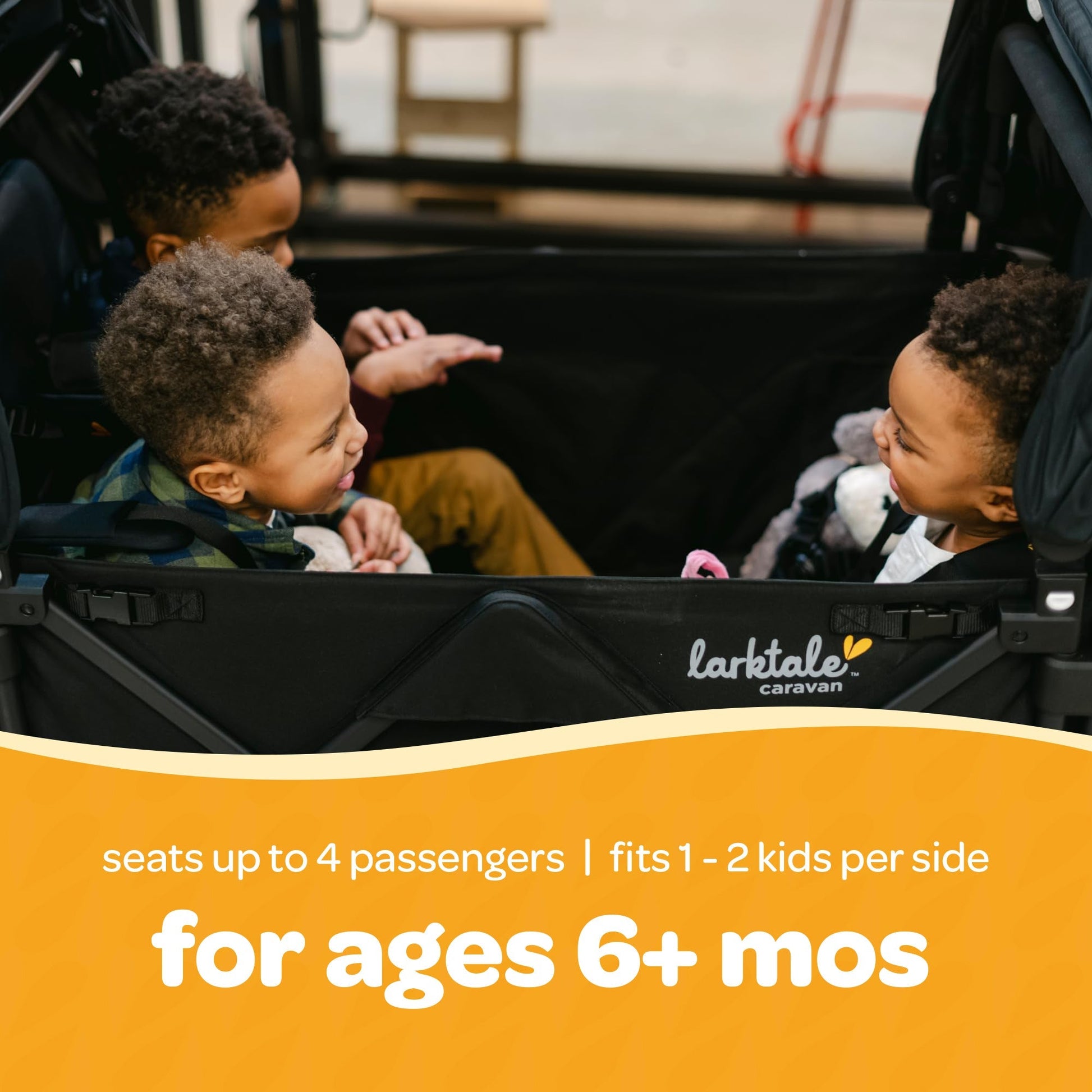 Introducing the Larktale caravan Quad Stroller/Wagon—a versatile solution for families on the move. Designed to comfortably seat up to four children, each in a multi-position reclining seat, it ensures a pleasant ride for your little ones. The shared drop-down footwell promotes a natural, stroller-style seating position, enhancing comfort during outings.
